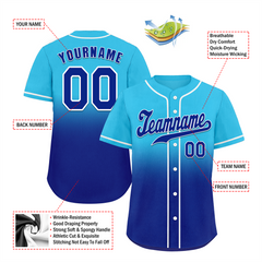 Custom Aqua Blue Fade Fashion Blue Authentic Baseball Jersey