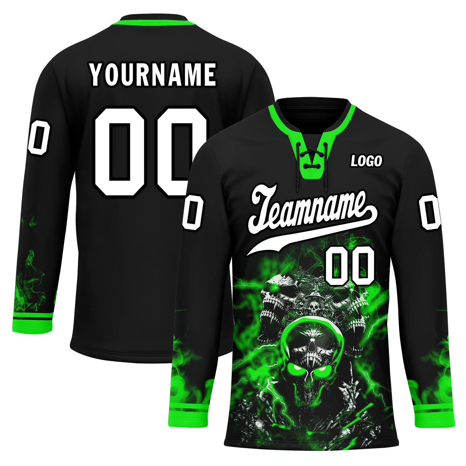 Custom Balck Green Gothic Personalized Hockey Jersey HCKJ01-E0601-01