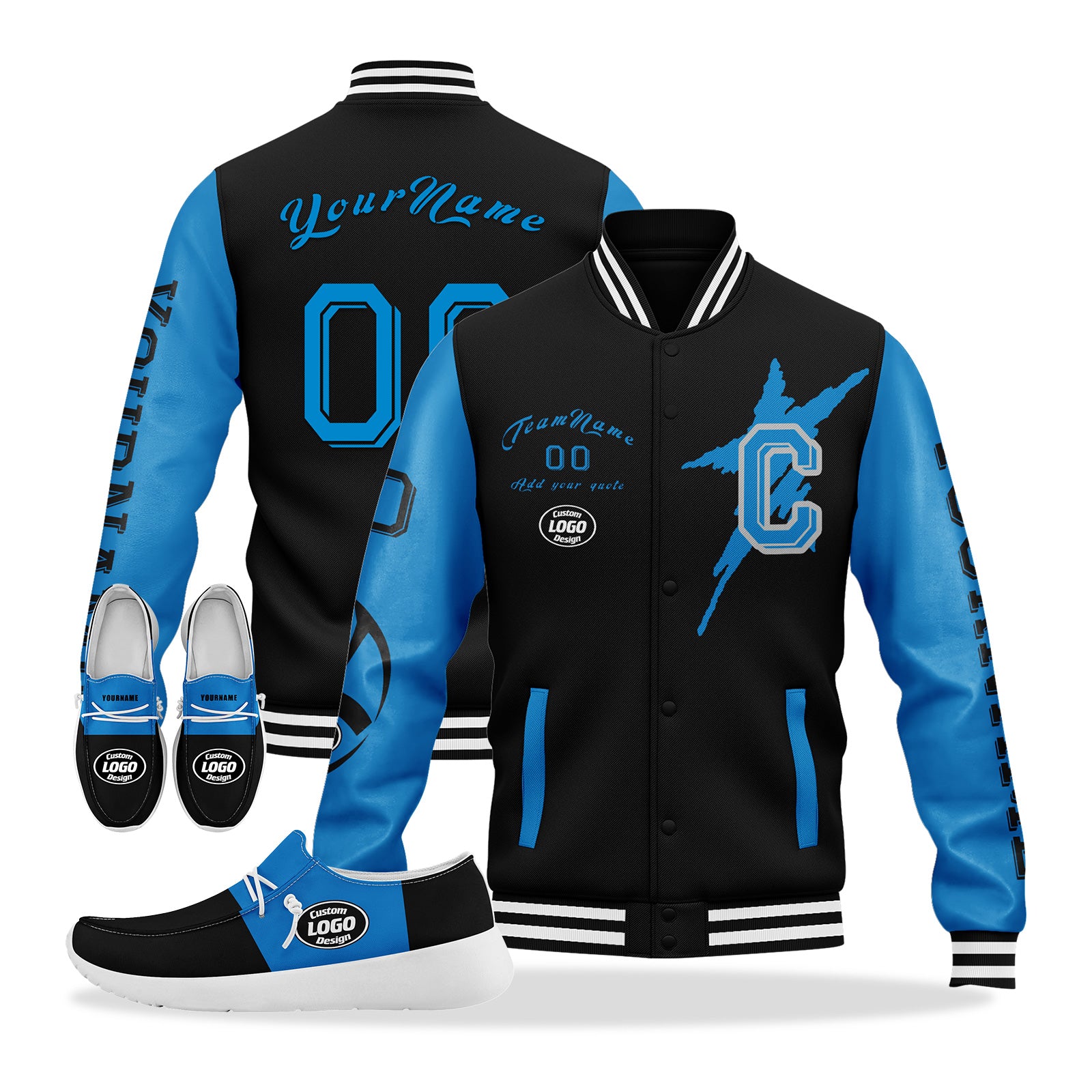 Custom Black Blue Carolina Jacket and Sports Shoes Combo Offer Personalized Combo ZH-D020294-5