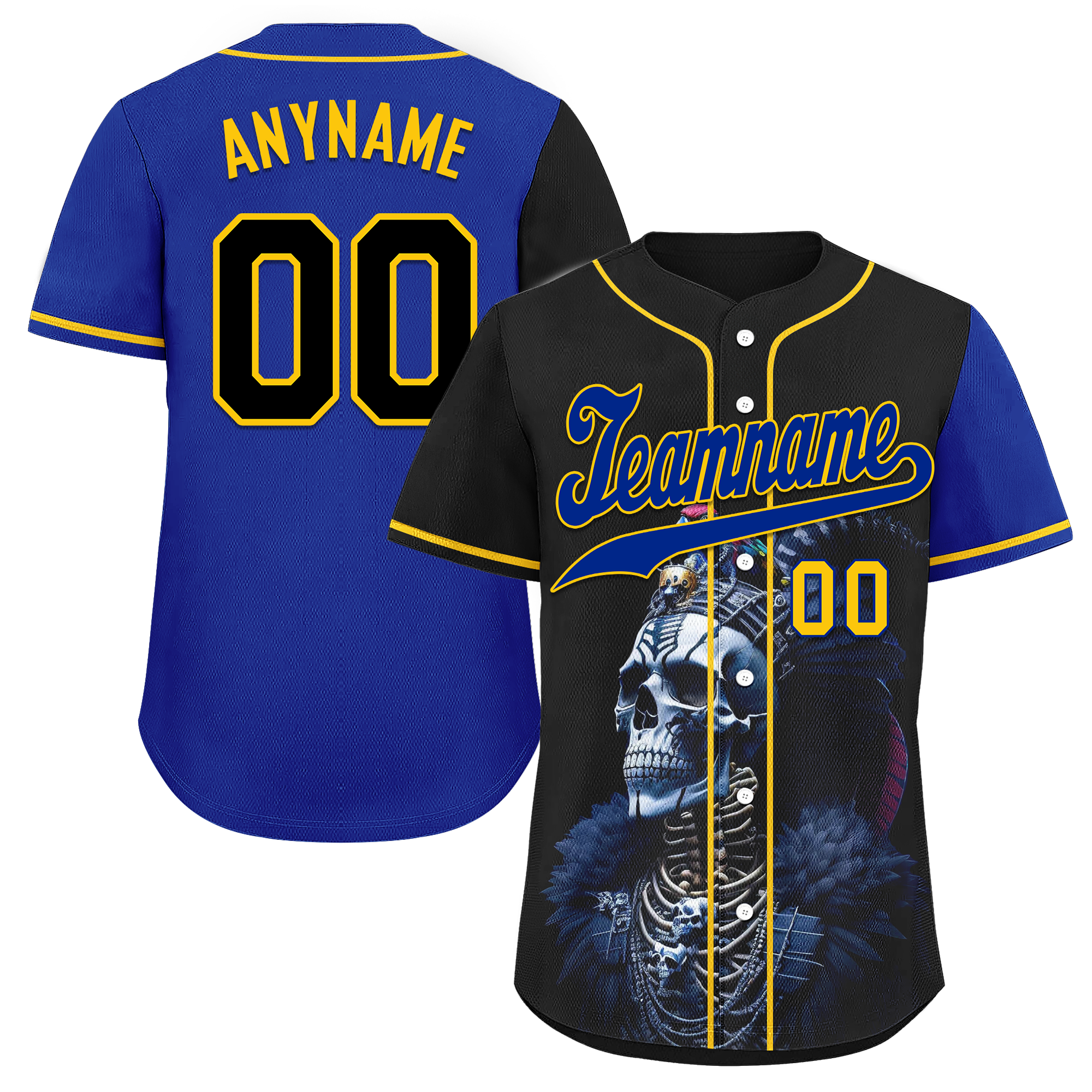 Custom Black Blue Skull Fashion Personalized Authentic Baseball Jersey BSBJ01-D017147