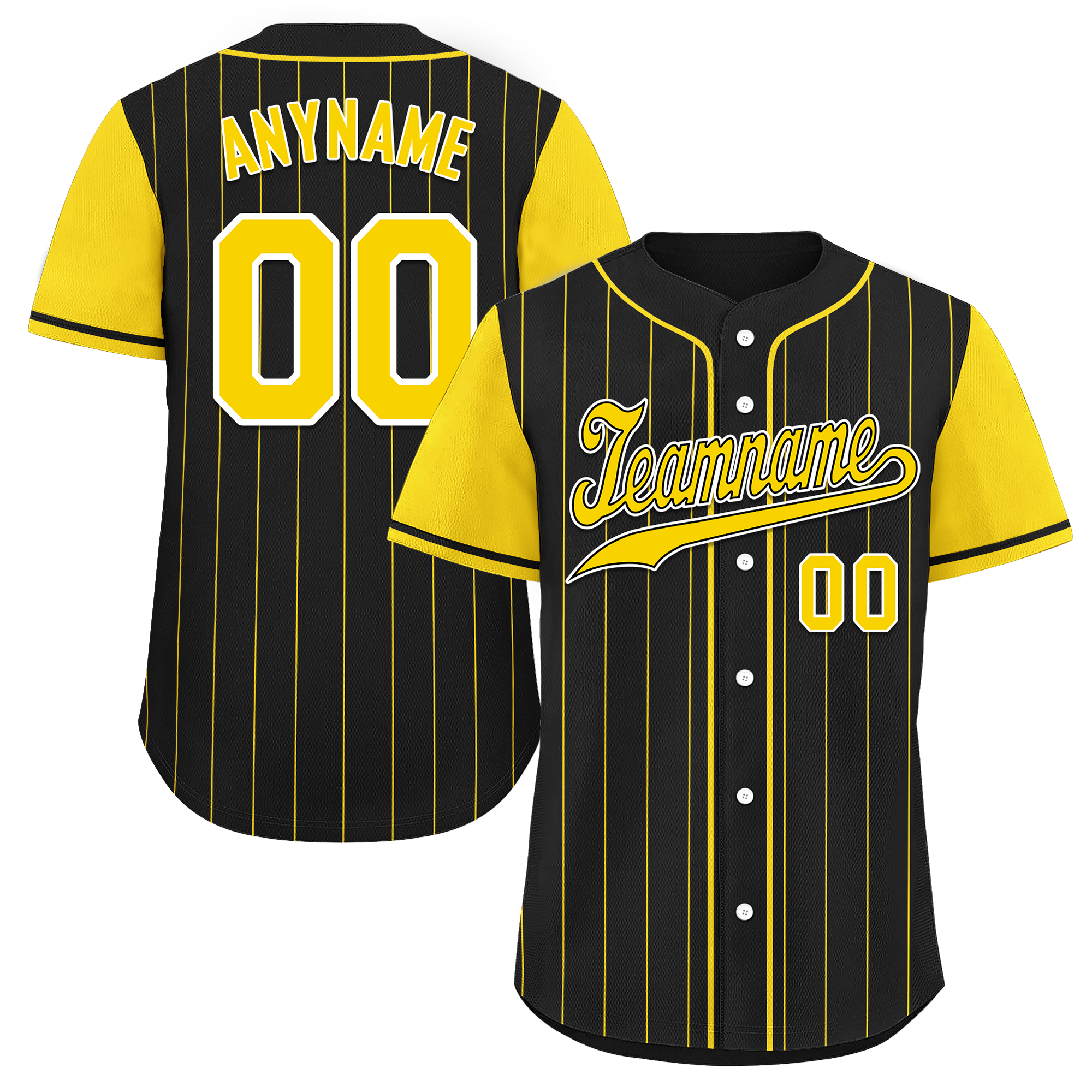 Custom Black Gold Stripe Fashion Personalized Authentic Baseball Jersey BSBJ01-D017217