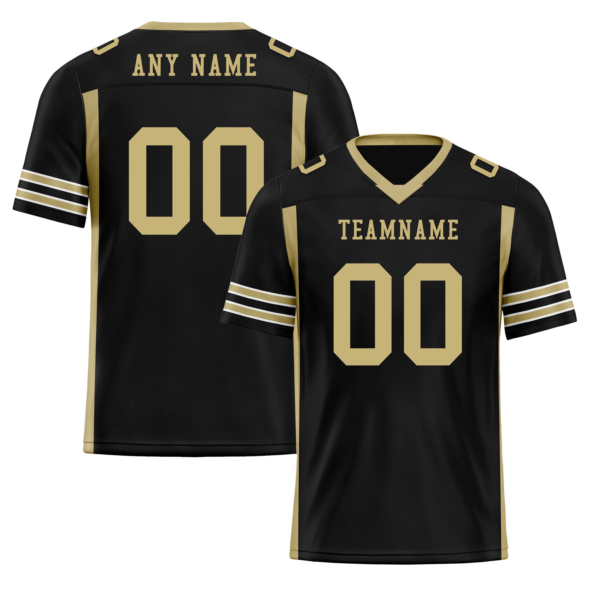 Custom Black Gold Striped Sleeves Personalized Authentic Football Jersey FBJ02-D06067
