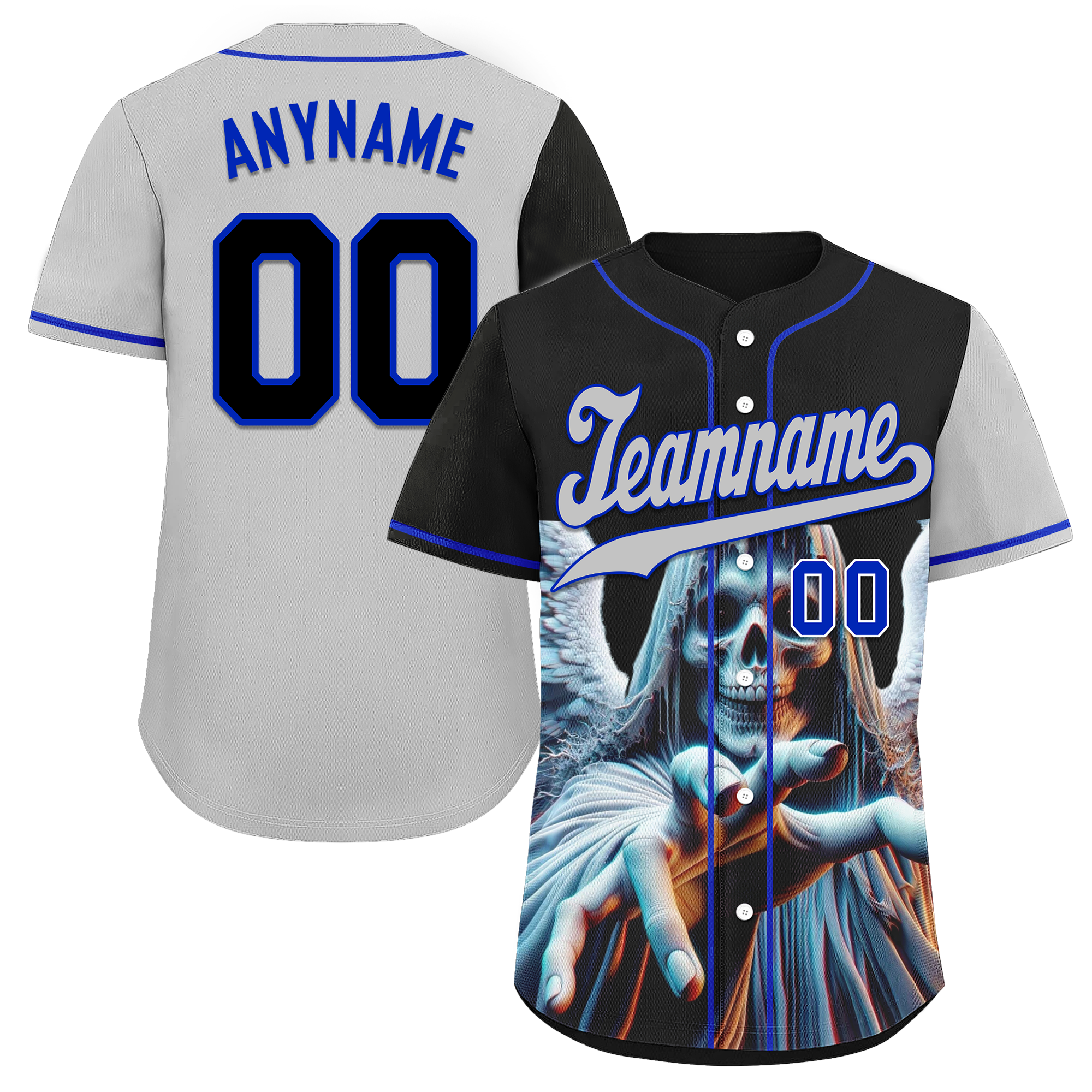 Custom Black Gray Skull Fashion Personalized Authentic Baseball Jersey BSBJ01-D017144