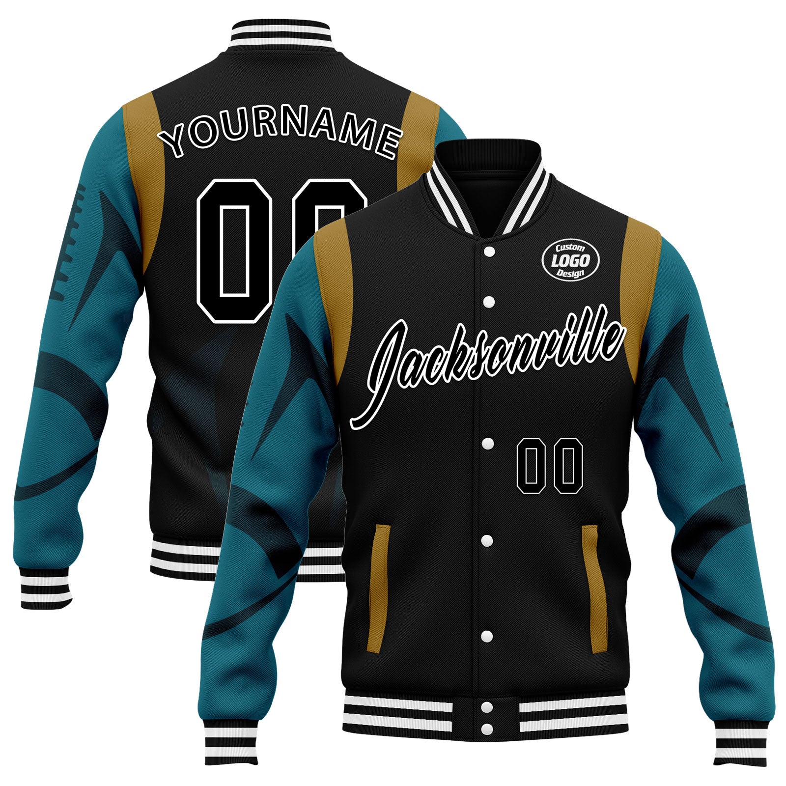 Custom Black Jacksonville Jacket Bomber Full-Snap Varsity Letterman Personalized Jacket FZ005-D025004-17