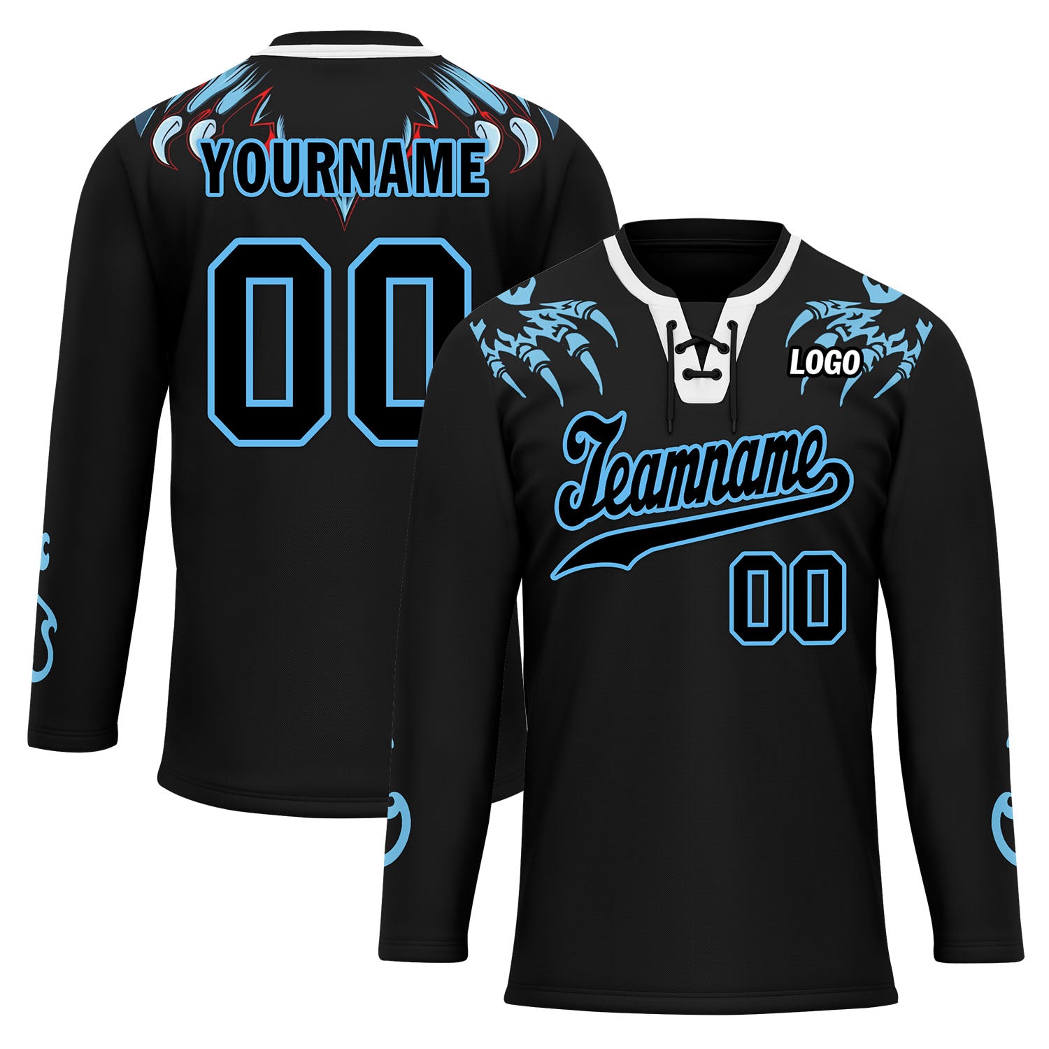 Custom Black Light Blue Gothic Personalized Hockey Jersey HCKJ01-E0601-10