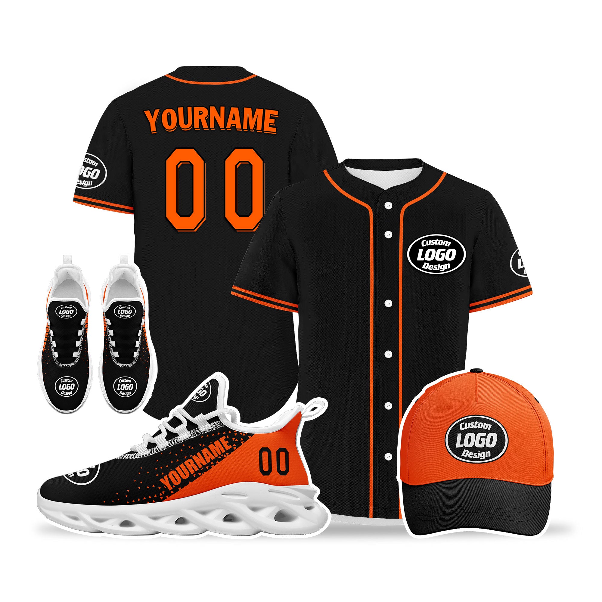 Custom Black Orange Jersey MaxSoul Shoes and Hat Combo Offer Personalized ZH-D0b0087-b