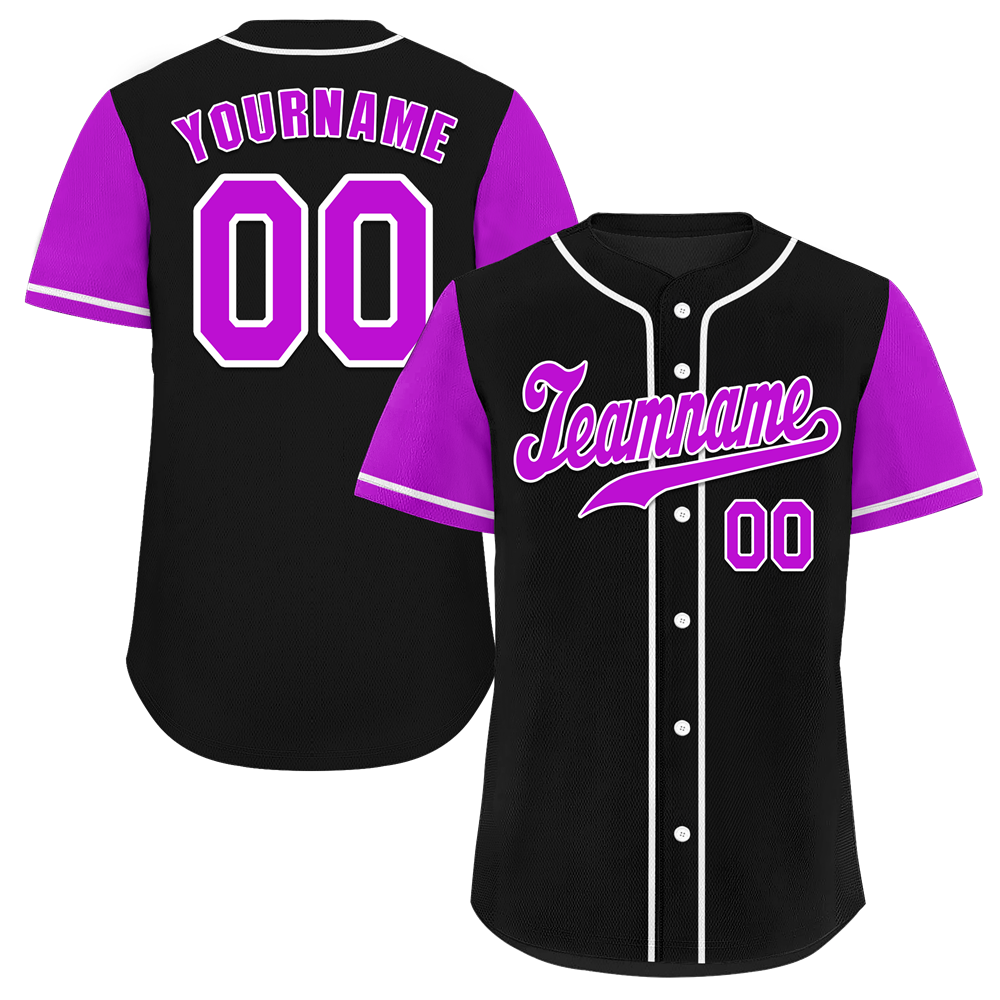 Custom Black Purple Raglan Sleeves Purple Authentic Baseball Jersey