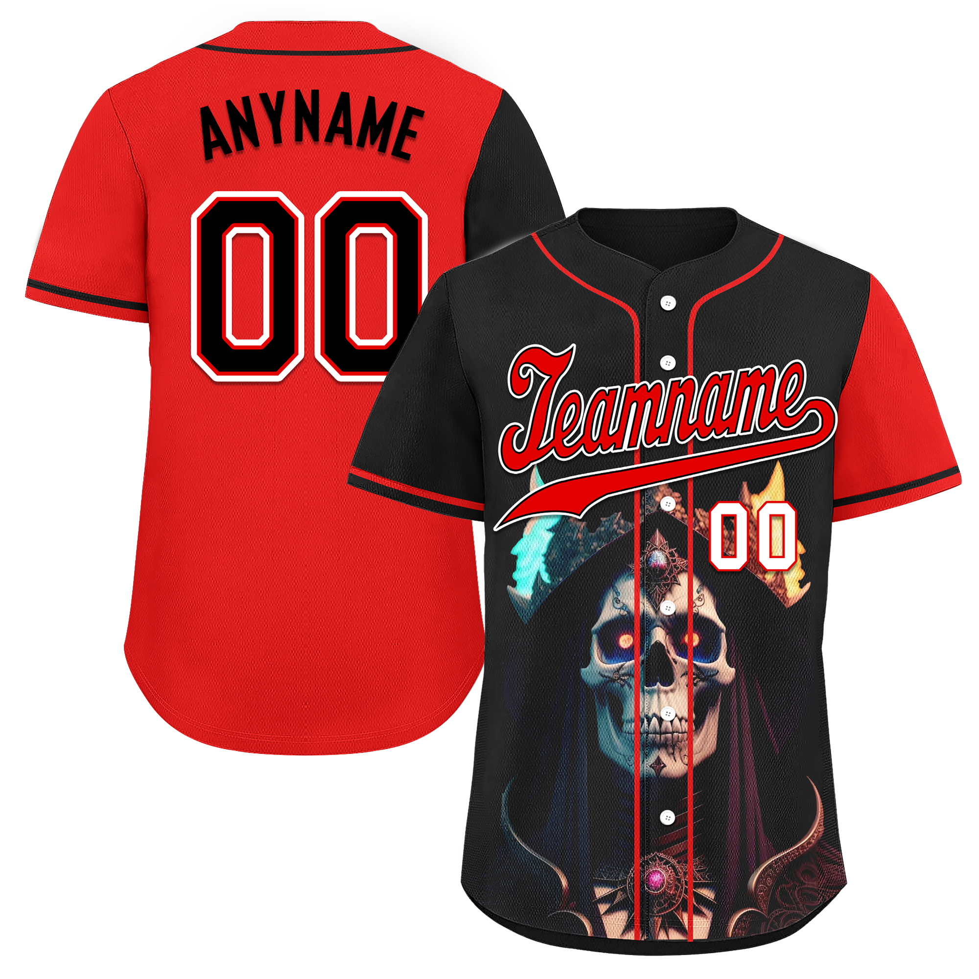 Custom Black Red Skull Fashion Personalized Authentic Baseball Jersey BSBJ01-D017159