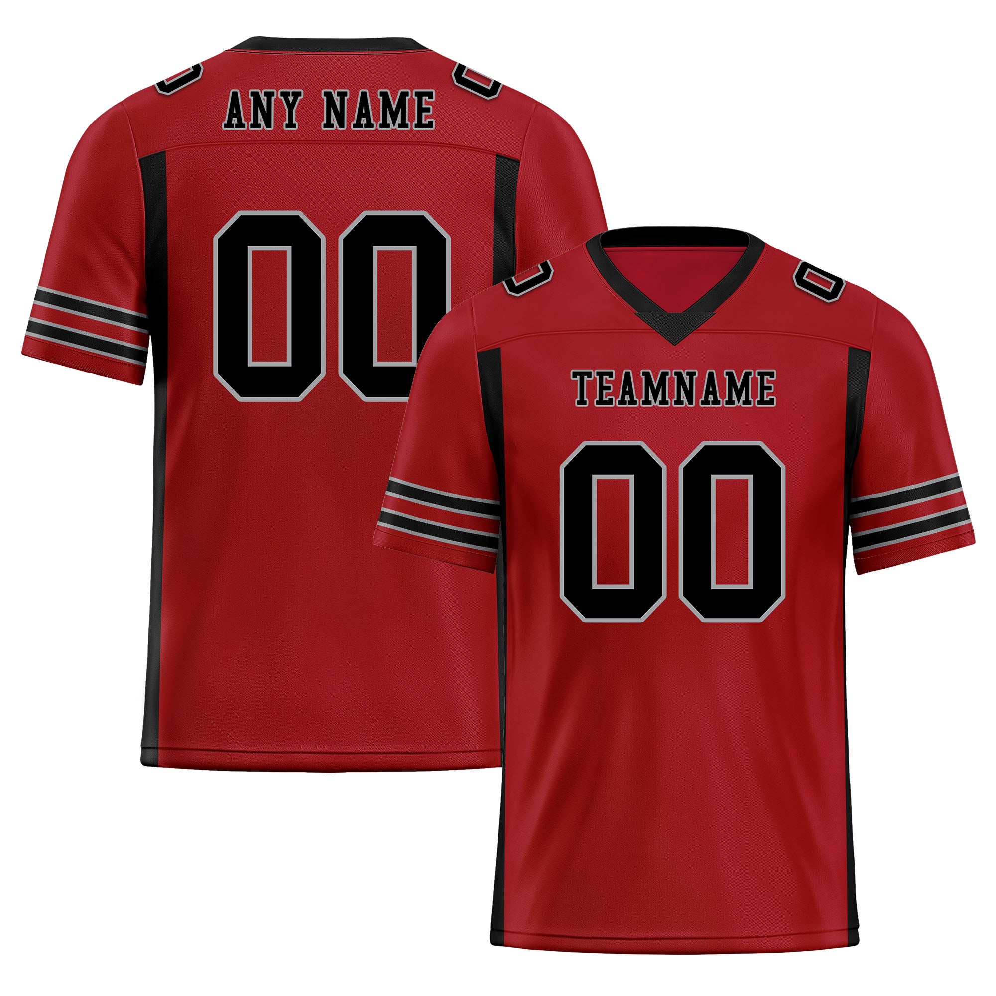 Custom Black Red Striped Sleeves Personalized Authentic Football Jersey FBJ02-D06075