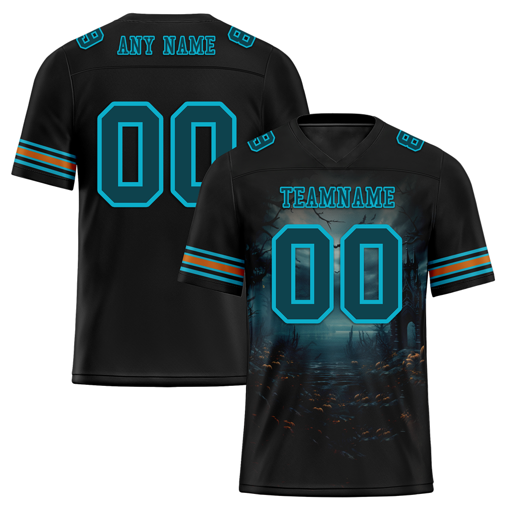 Custom Black Skull Fashion Aqua Personalized Authentic Football Jersey FBJ02-bc0fba9