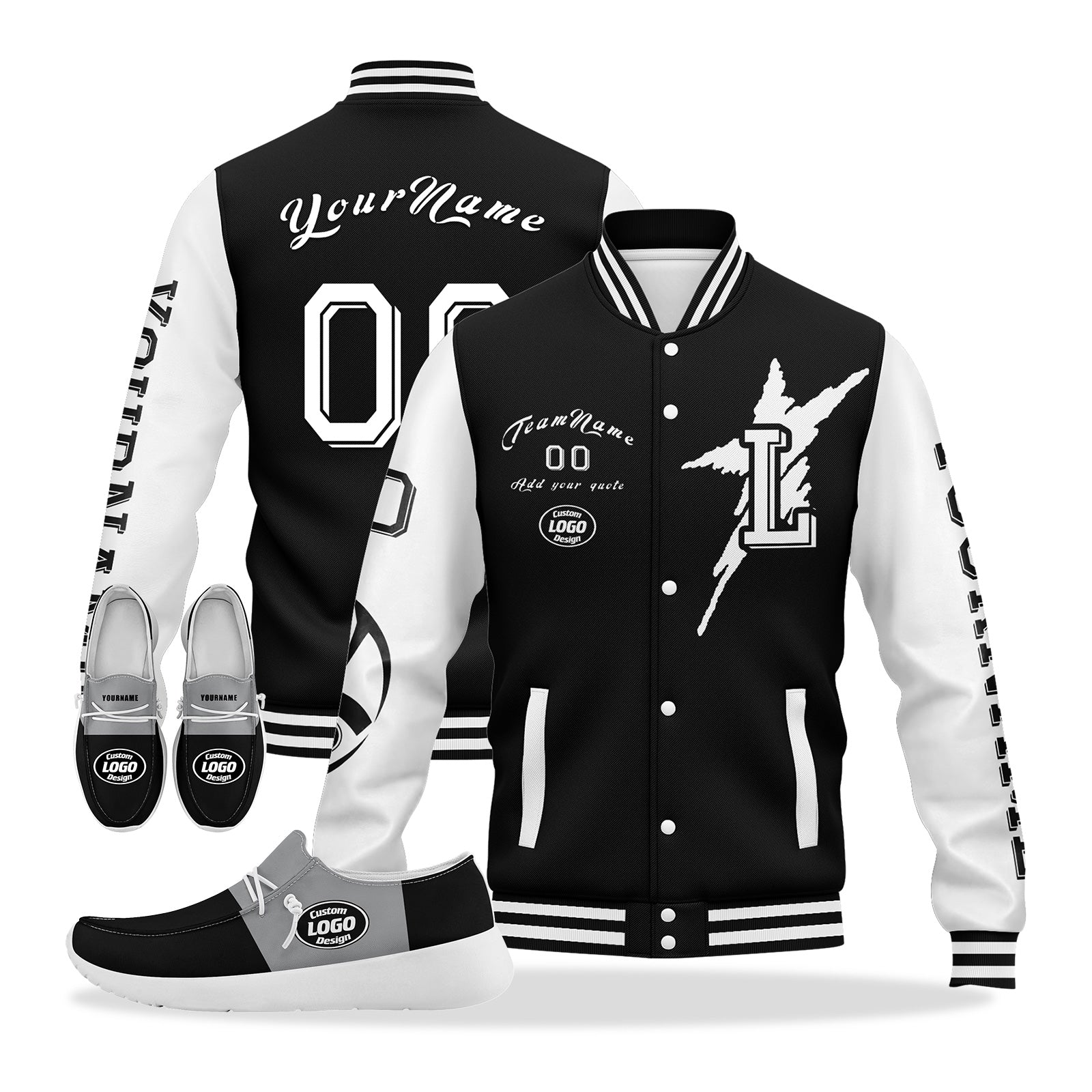 Custom Black White Gray Las Vegas Jacket and Sports Shoes Combo Offer Personalized Combo ZH-D020294-20