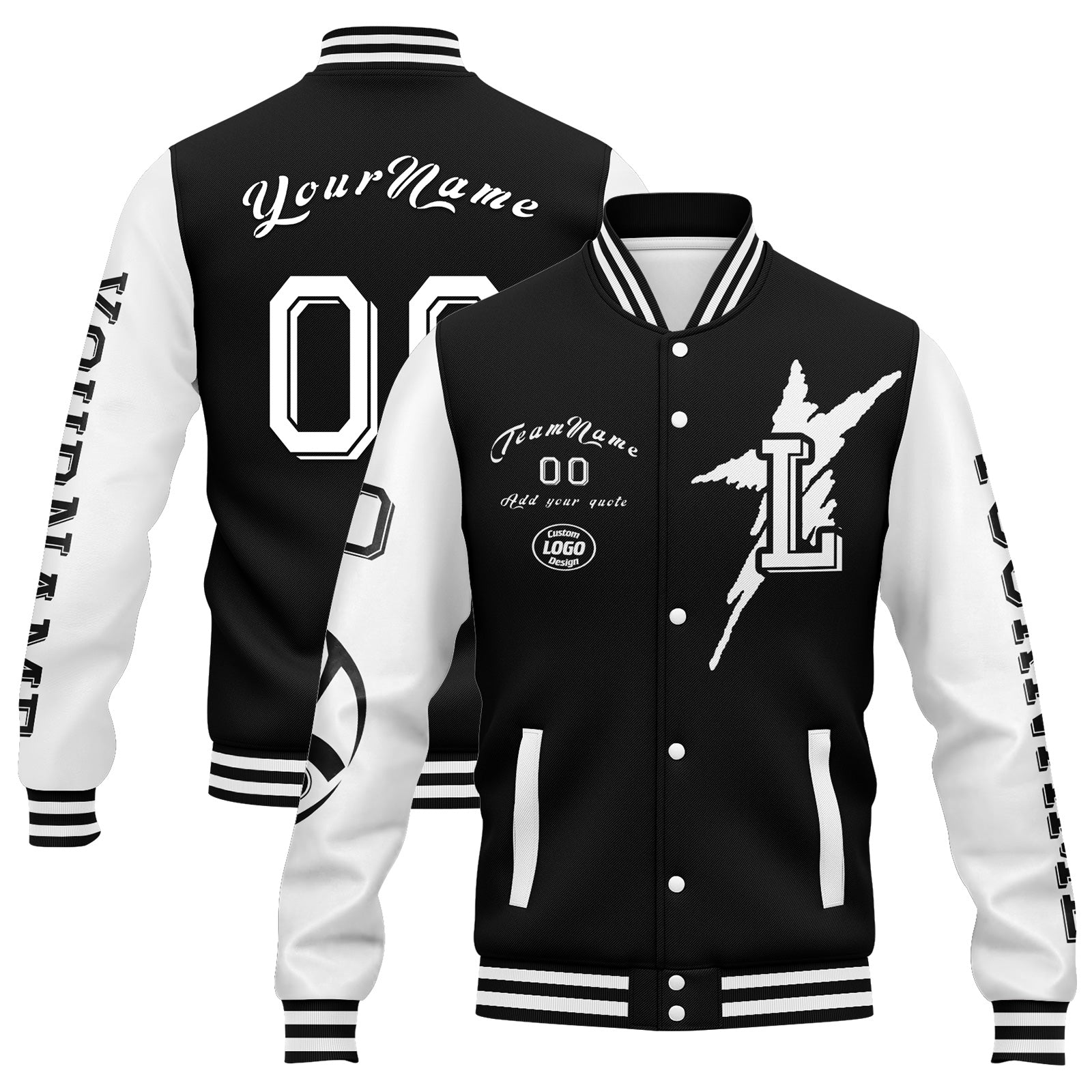 Custom Black White Las Vegas Jacket Bomber Full-Snap Varsity Letterman Personalized Jacket FZ005SX-D020290-20