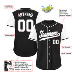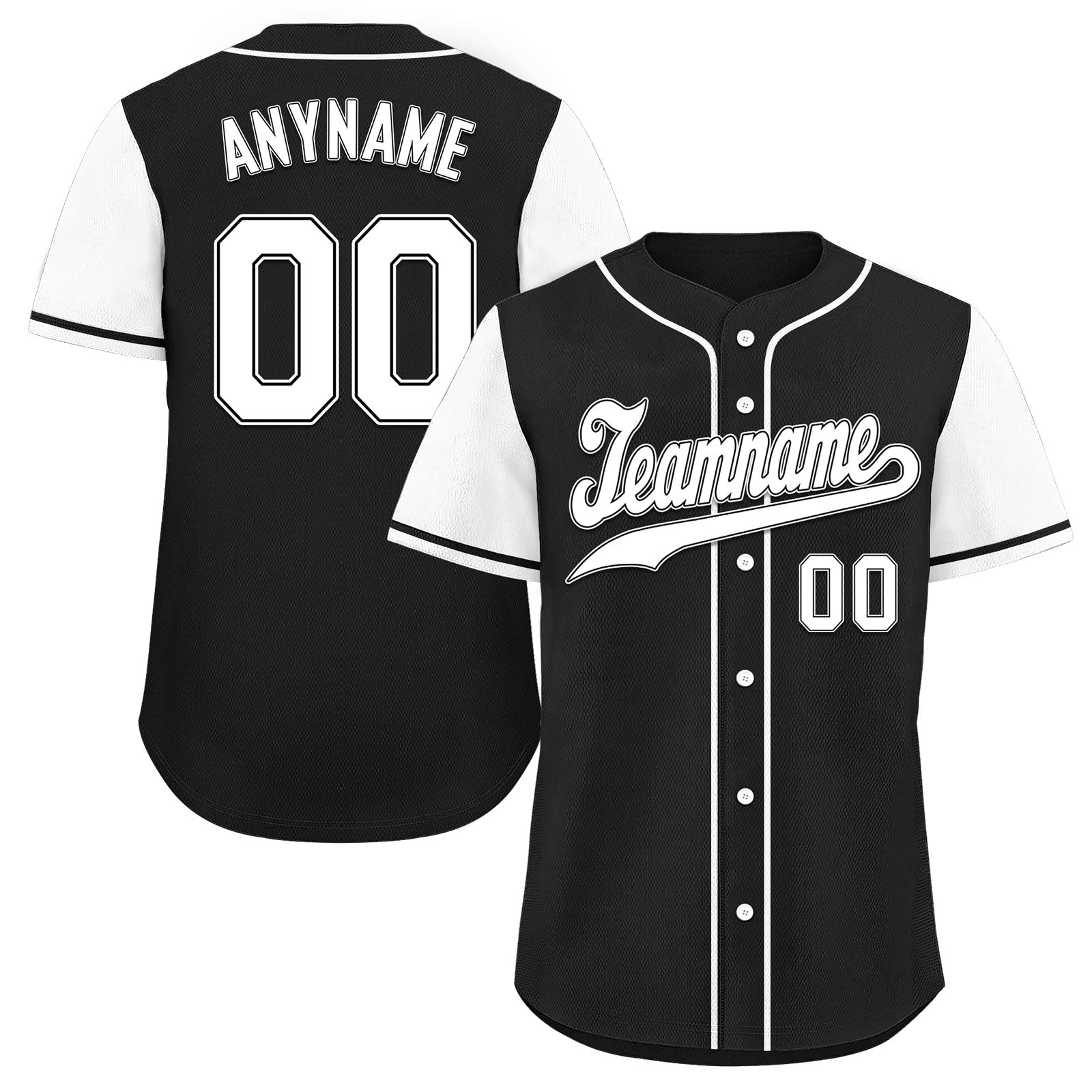 Custom Black White Raglan Sleeves Personalized Authentic Baseball Jersey BSBJ01-D020200-20