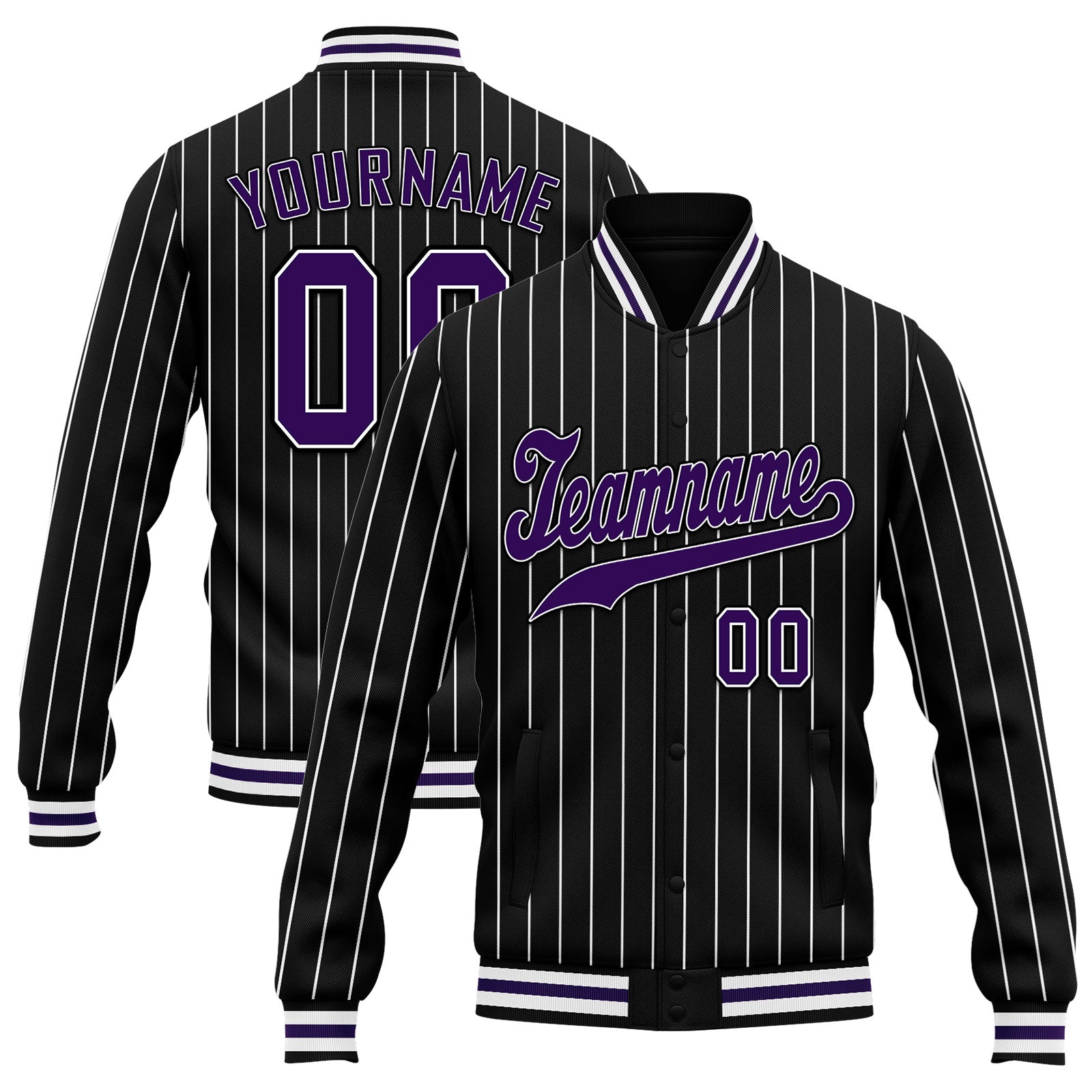 Custom Black White Stripe Fashion Jacket Bomber Full-Snap Varsity Letterman Personalized Jacket FZ005-D020219-9