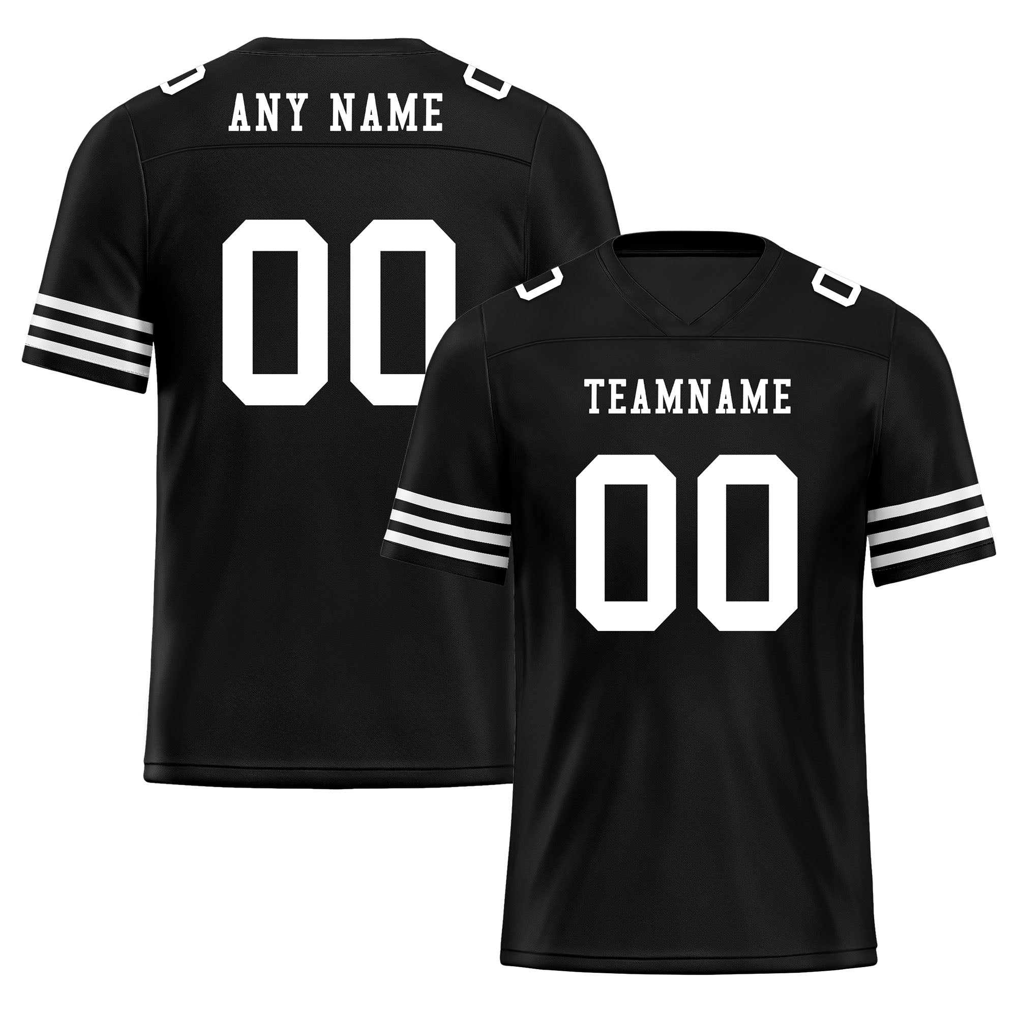 Custom Black White Striped Sleeves Personalized Authentic Football Jersey FBJ02-D06039