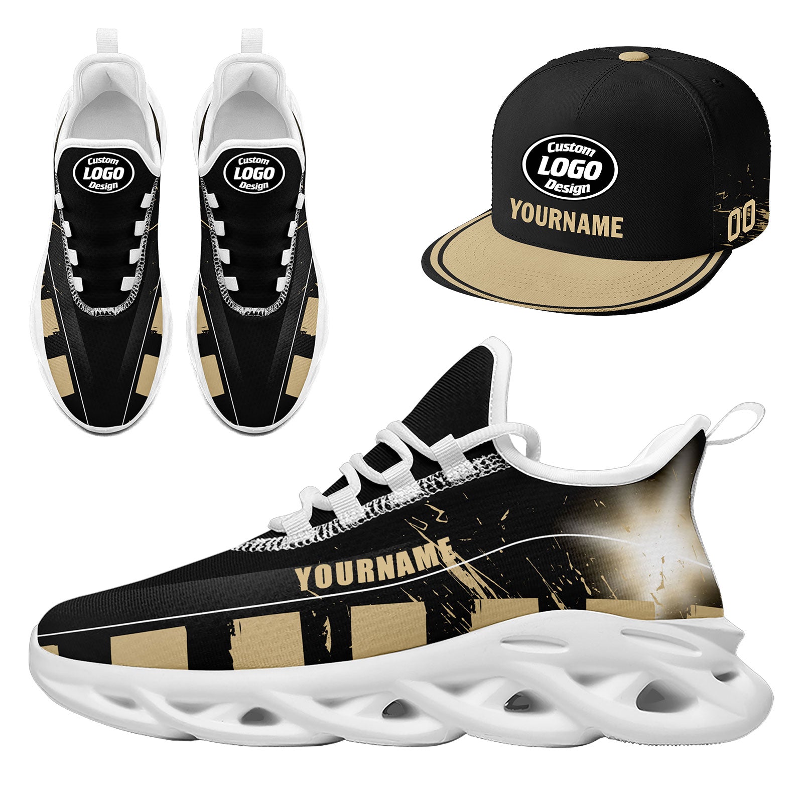 Custom Black Yellow New Orleans MaxSoul Shoes and Hat Combo Offer Personalized Combo ZH-D020264-19