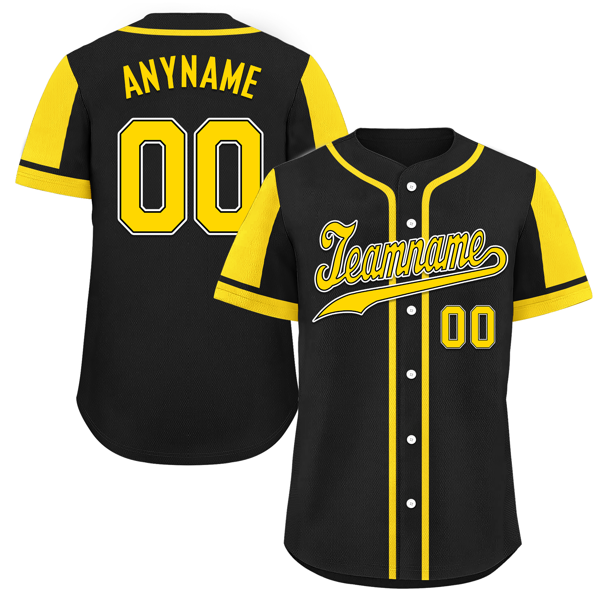 Custom Black Yellow Raglan Sleeves Personalized Authentic Baseball Jersey BSBJ01-D017171