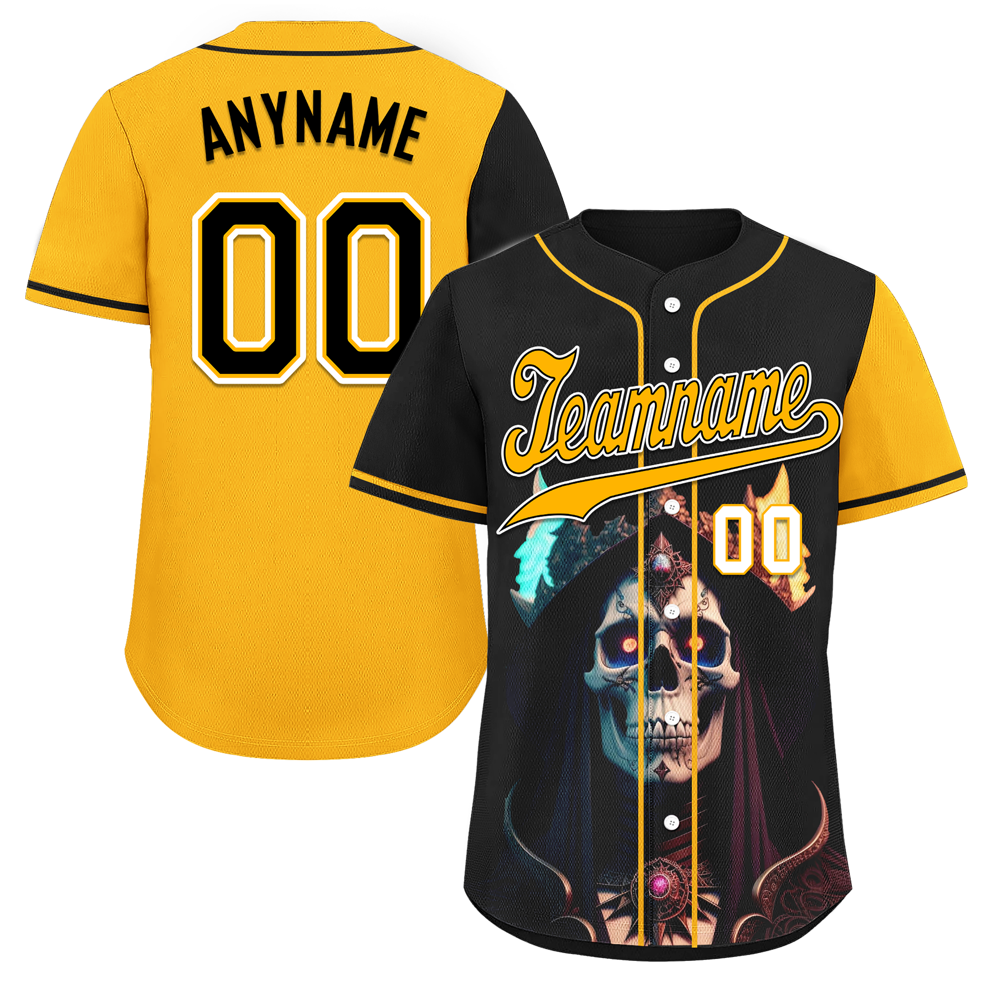 Custom Black Yellow Skull Fashion Personalized Authentic Baseball Jersey BSBJ01-D017155