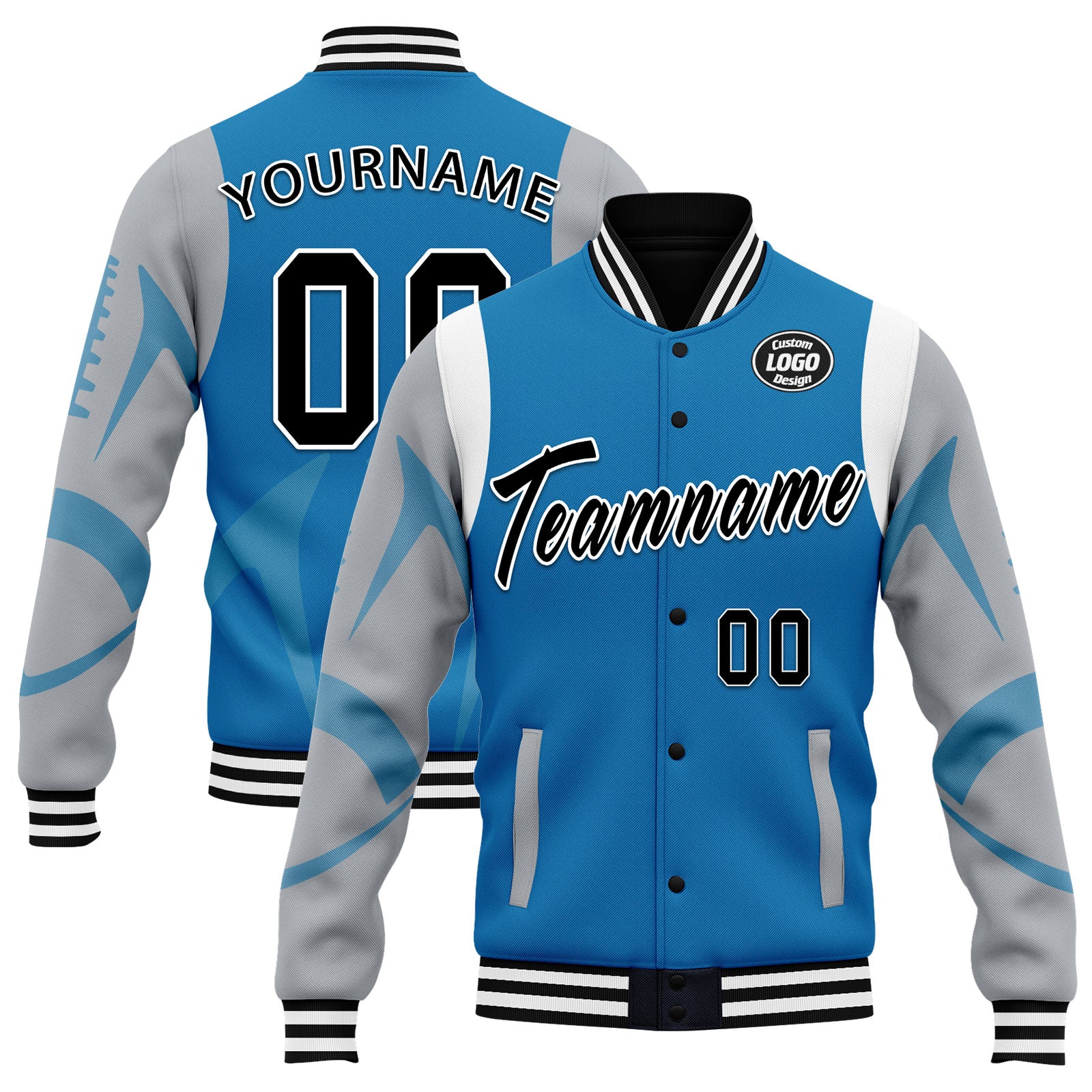 Custom Blue Detroit Jacket Bomber Full-Snap Varsity Letterman Personalized Jacket FZ005-D025004-9