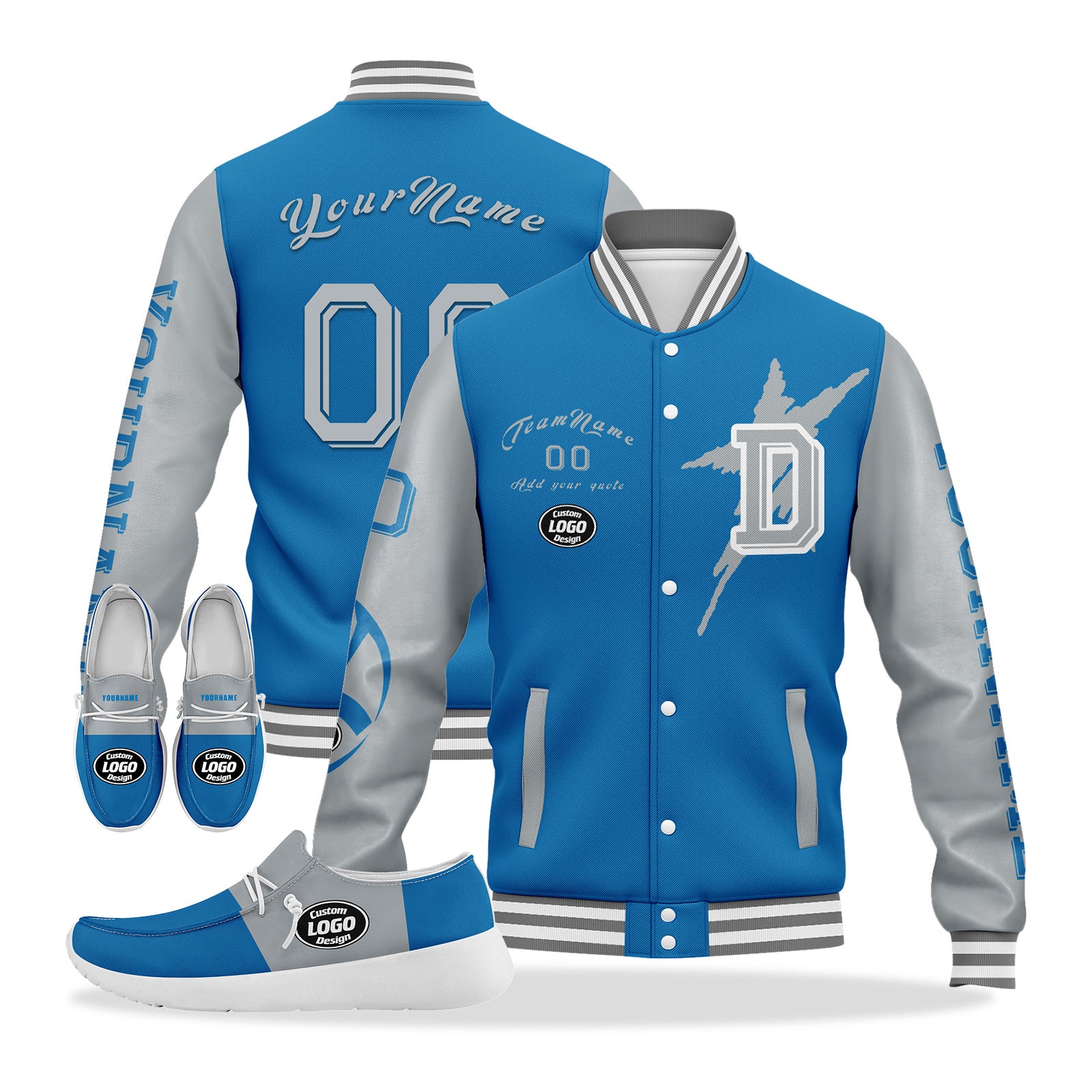 Custom Blue Gray Detroit Jacket and Sports Shoes Combo Offer Personalized Combo ZH-D020294-11