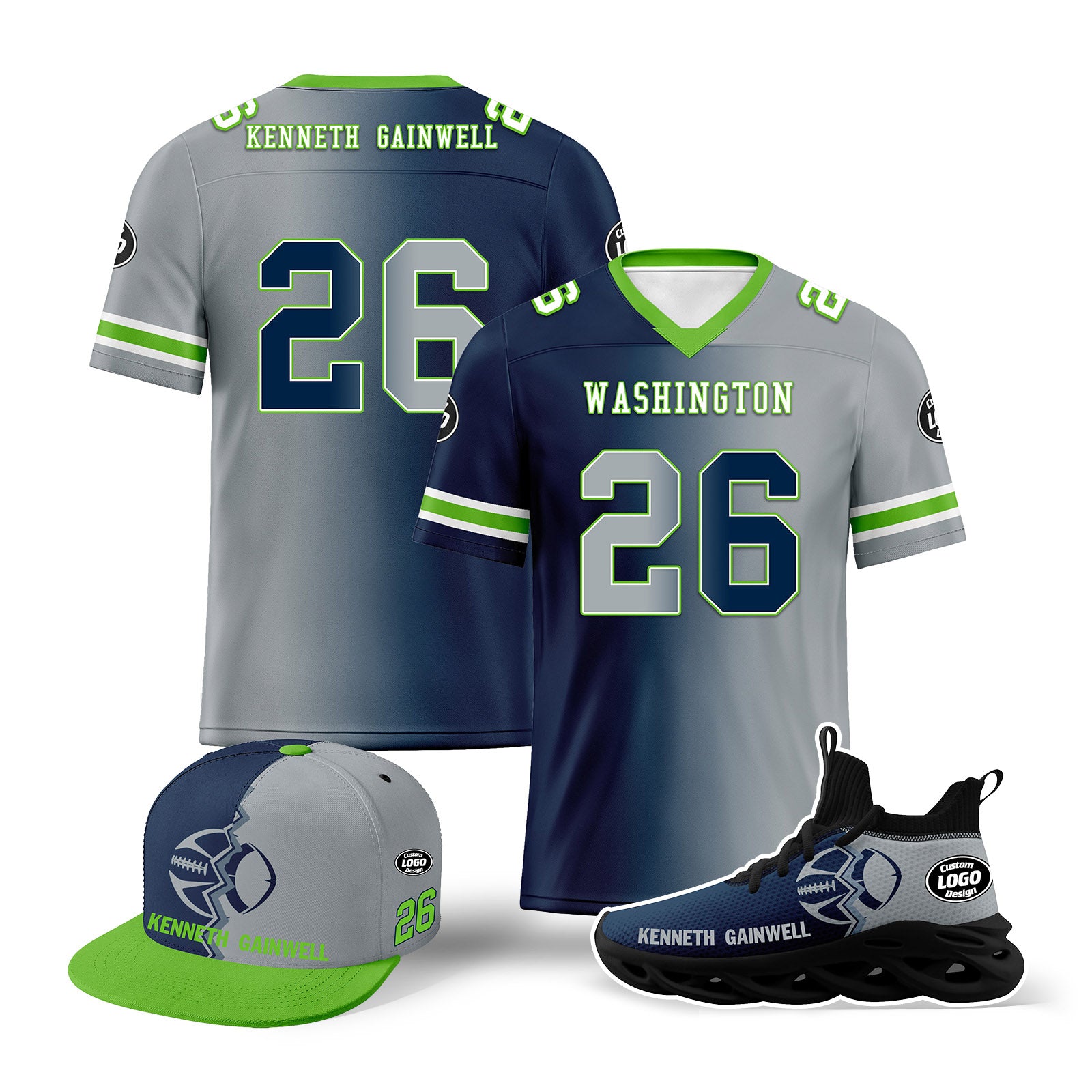 Custom Blue Grey Washington Football Jersey MaxSoul Shoes and Hat Combo Offer Personalized Combo ZH-D028018-14