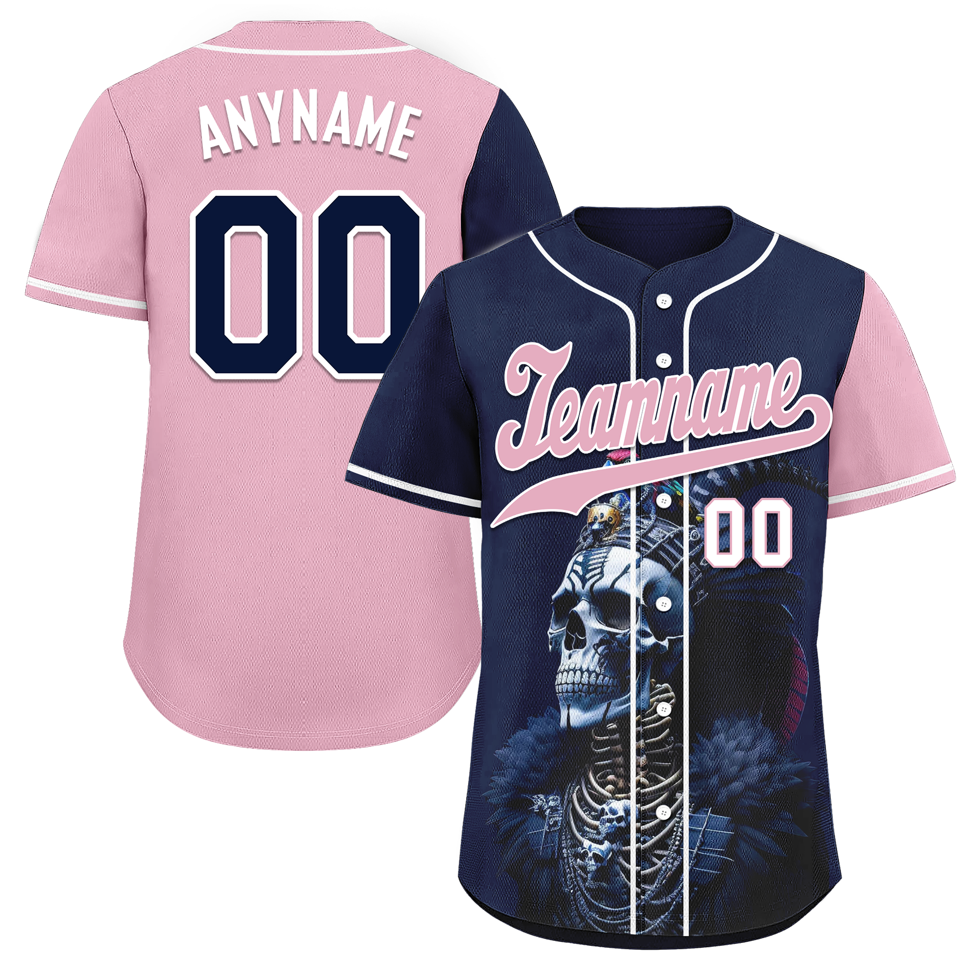 Custom Blue Pink Skull Fashion Personalized Authentic Baseball Jersey BSBJ01-D017145