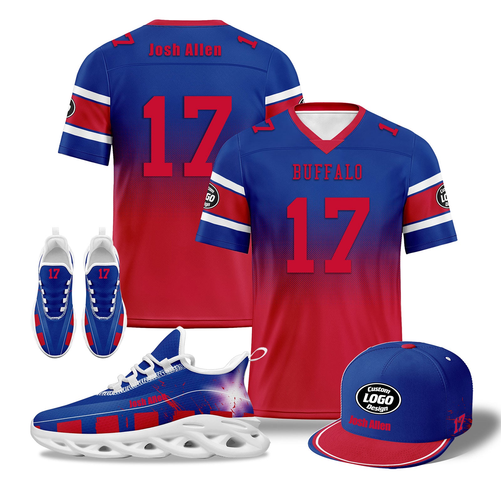 Custom Blue Red Buffalo Football MaxSoul Shoes and Hat Combo Offer Personalized Combo ZH-D020268-4