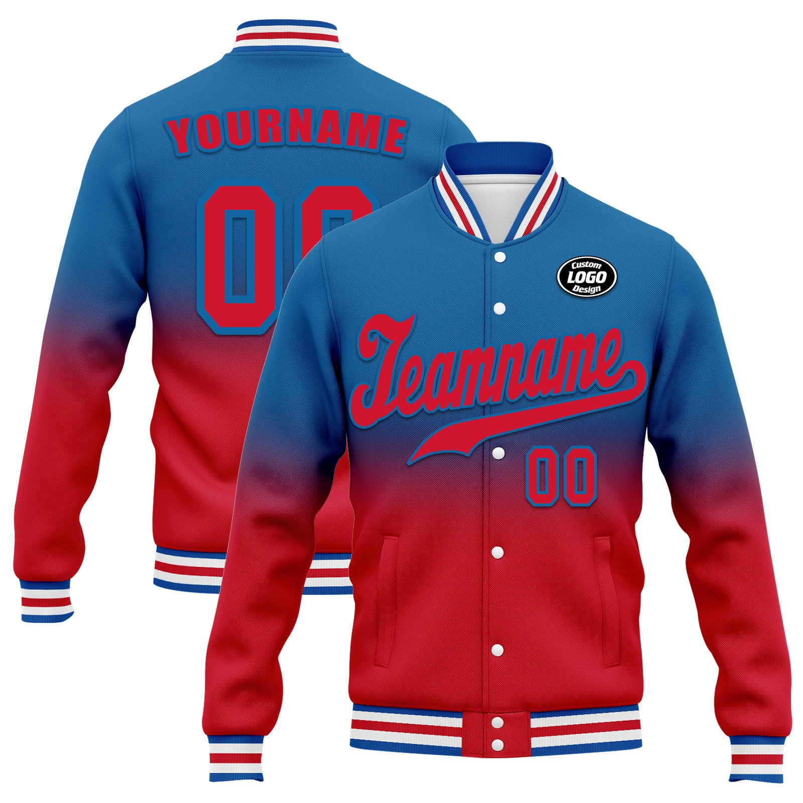 Custom Blue Red Fade Fashion Jacket Bomber Full-Snap Varsity Letterman Personalized Jacket FZ005-D020229-11