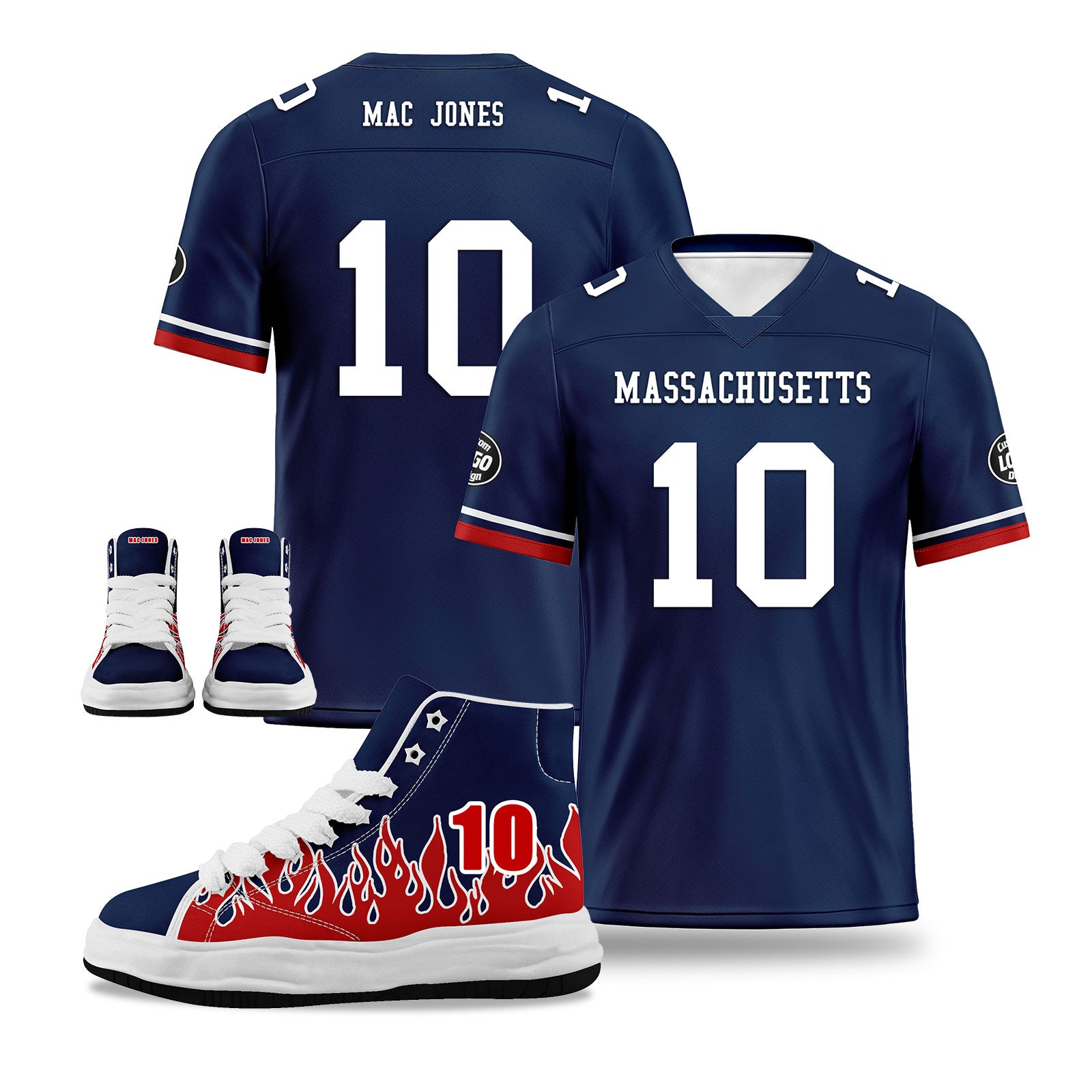 Custom Blue Red New England Football Jersey and Firesoul Sports Shoes Combo Offer Personalized Combo ZH-D020273-26