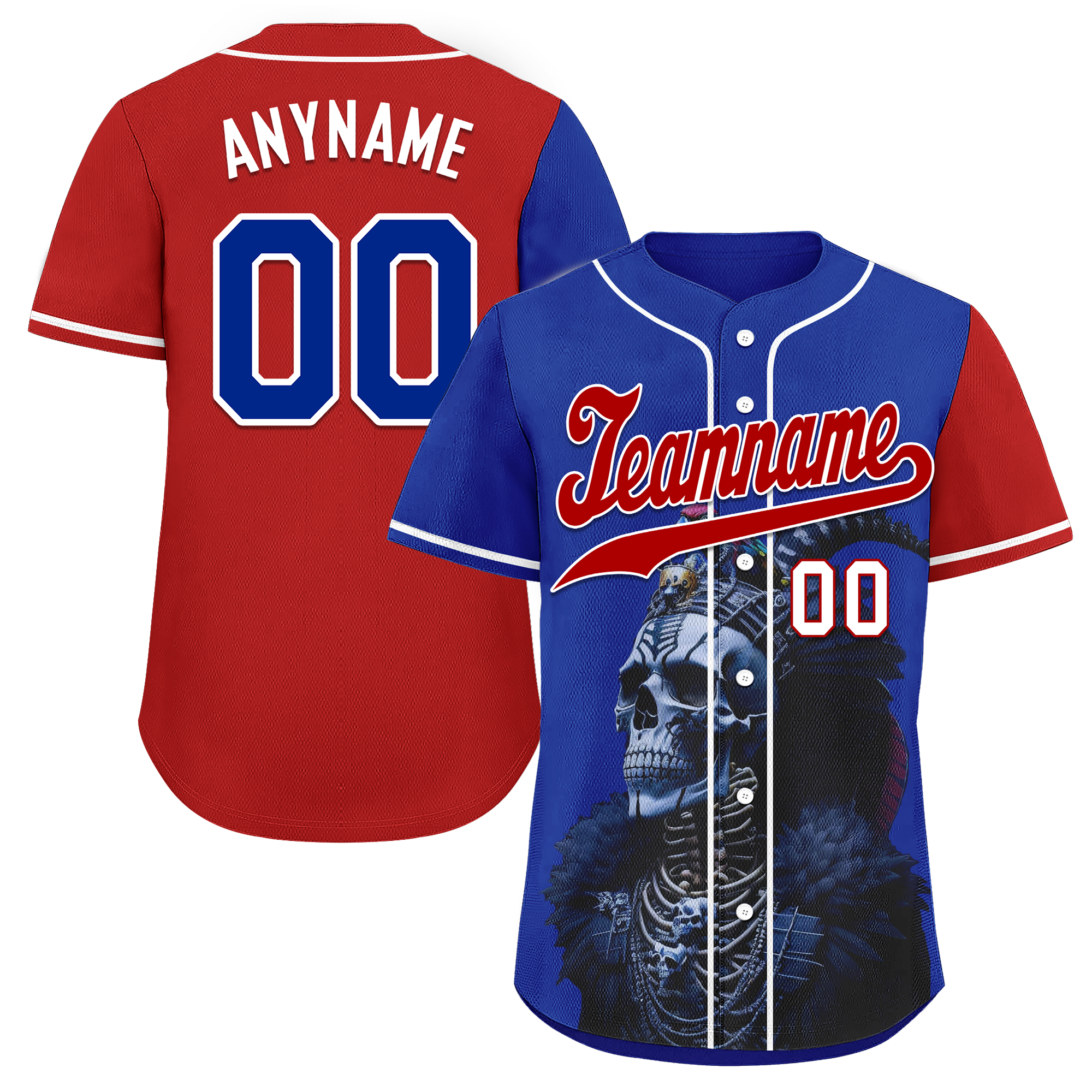 Custom Blue Red Skull Fashion Personalized Authentic Baseball Jersey BSBJ01-D017146