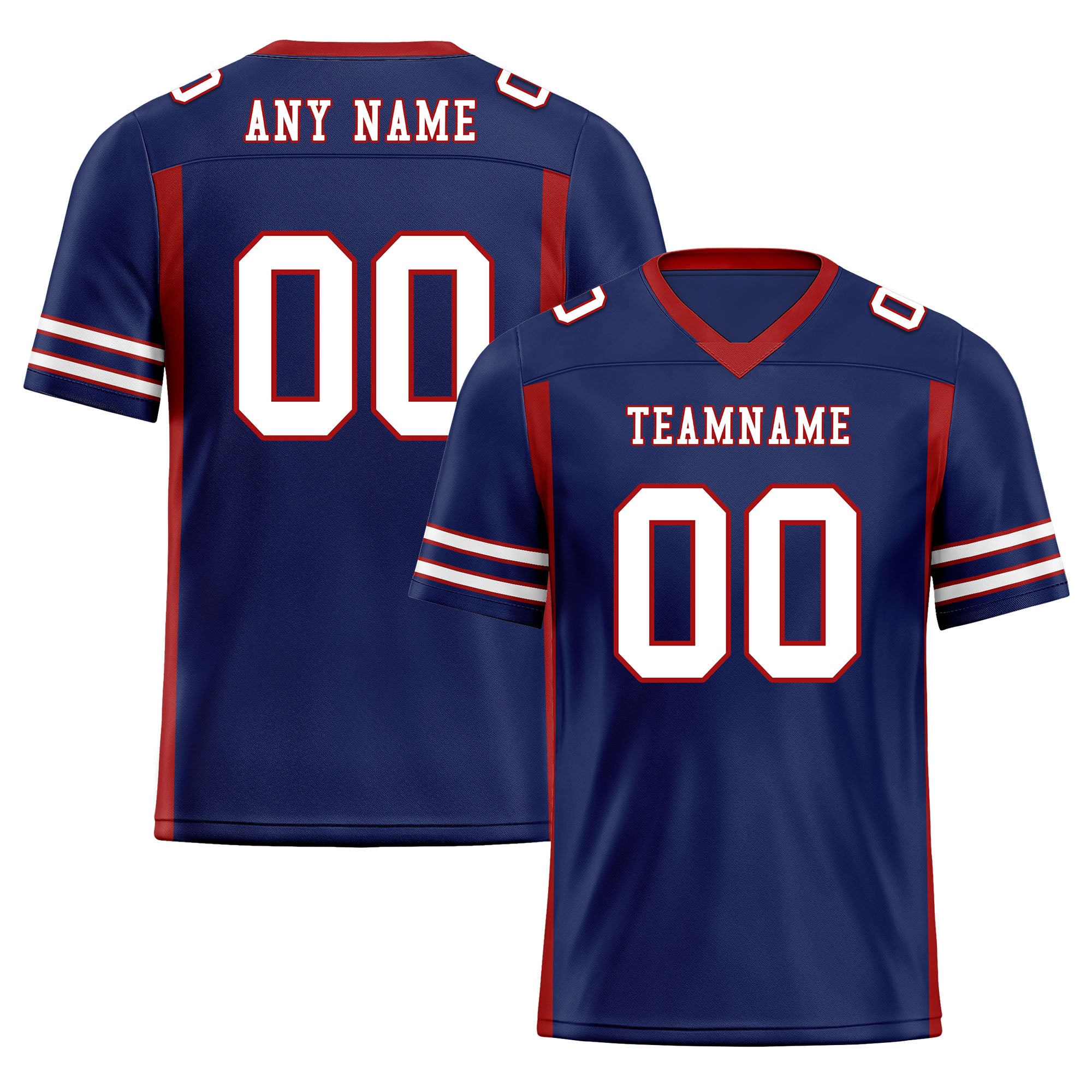 Custom Blue Red Striped Sleeves Personalized Authentic Football Jersey FBJ02-D06060