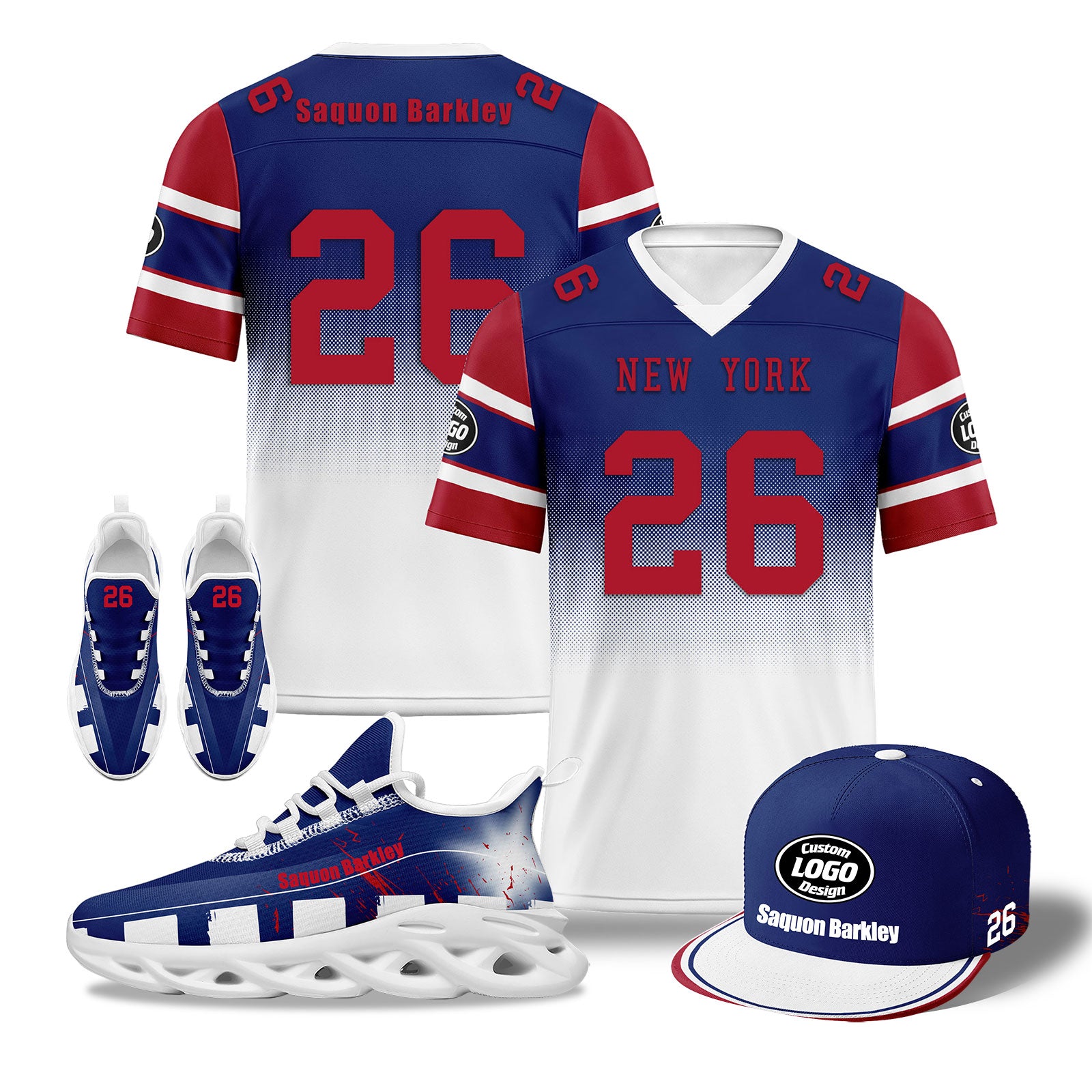 Custom Blue Red White New York Football MaxSoul Shoes and Hat Combo Offer Personalized Combo ZH-D020268-21