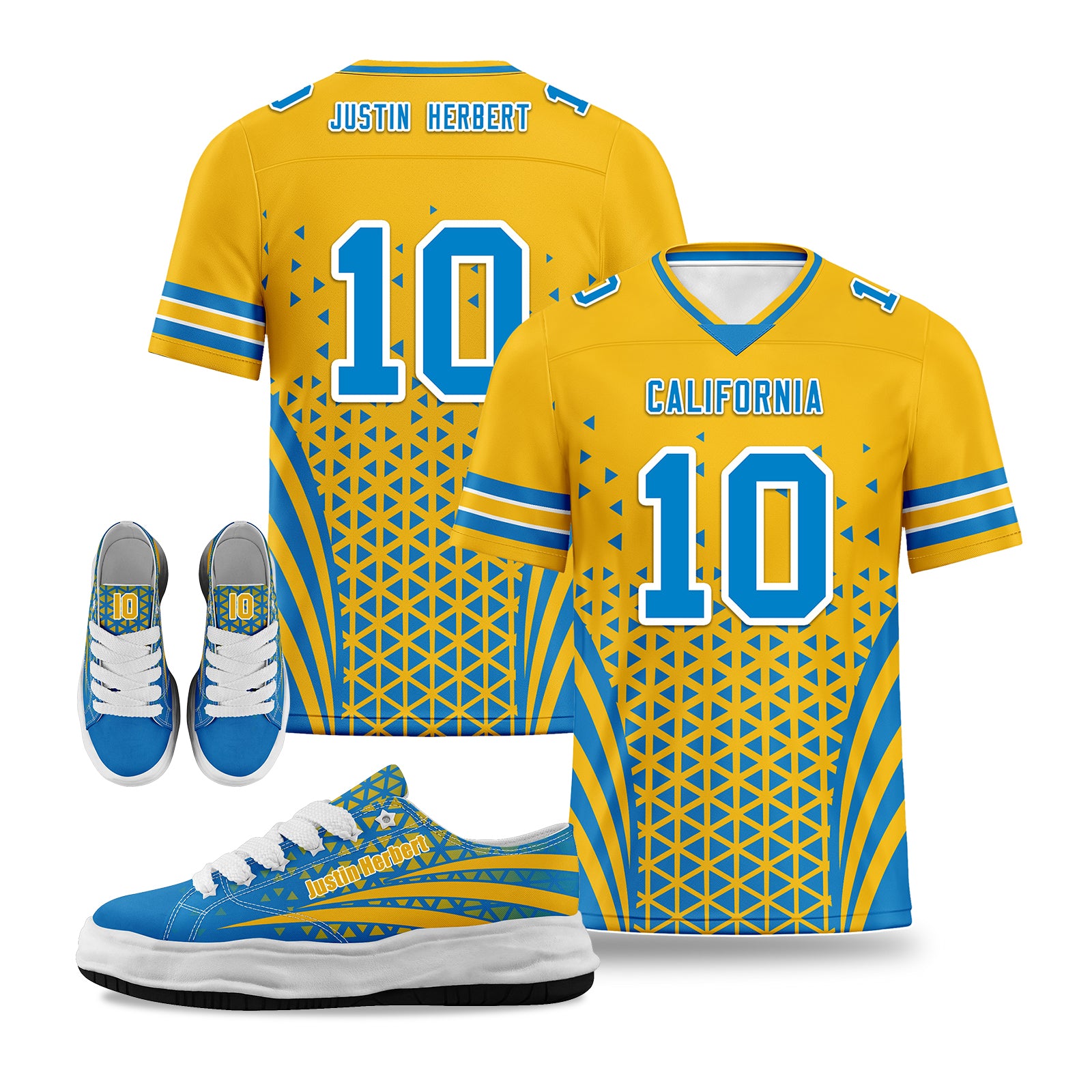 Custom Blue White California Football Jersey and Sports Shoes Combo Offer Personalized Combo ZH-D023031-22
