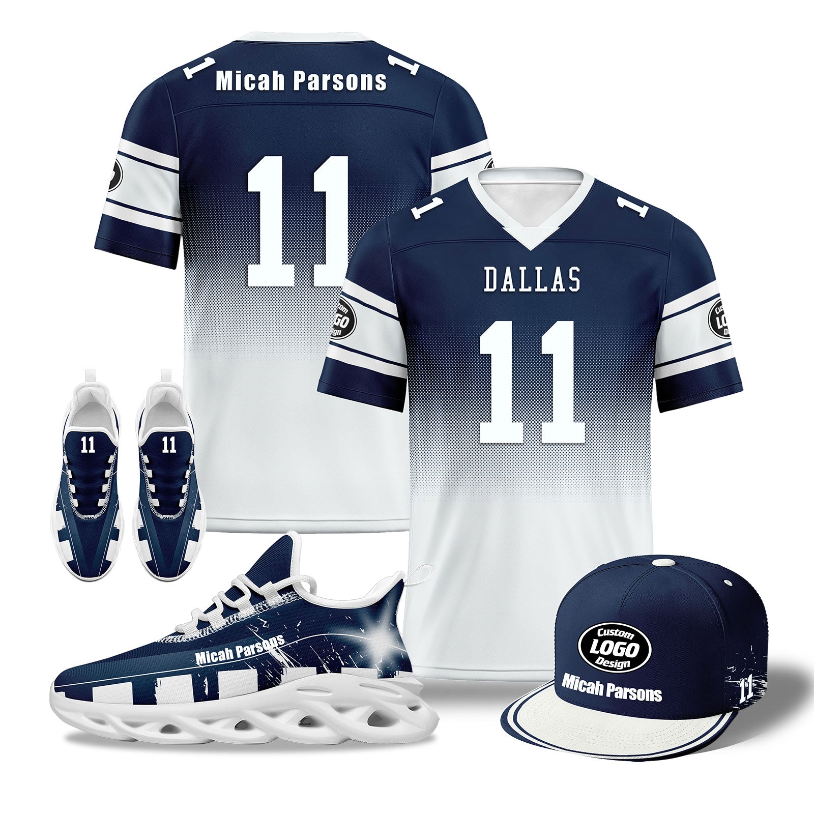 Elevate your fashion game with this exclusive combo deal featuring a custom hat, a pair of custom sneakers, and a custom jersey!