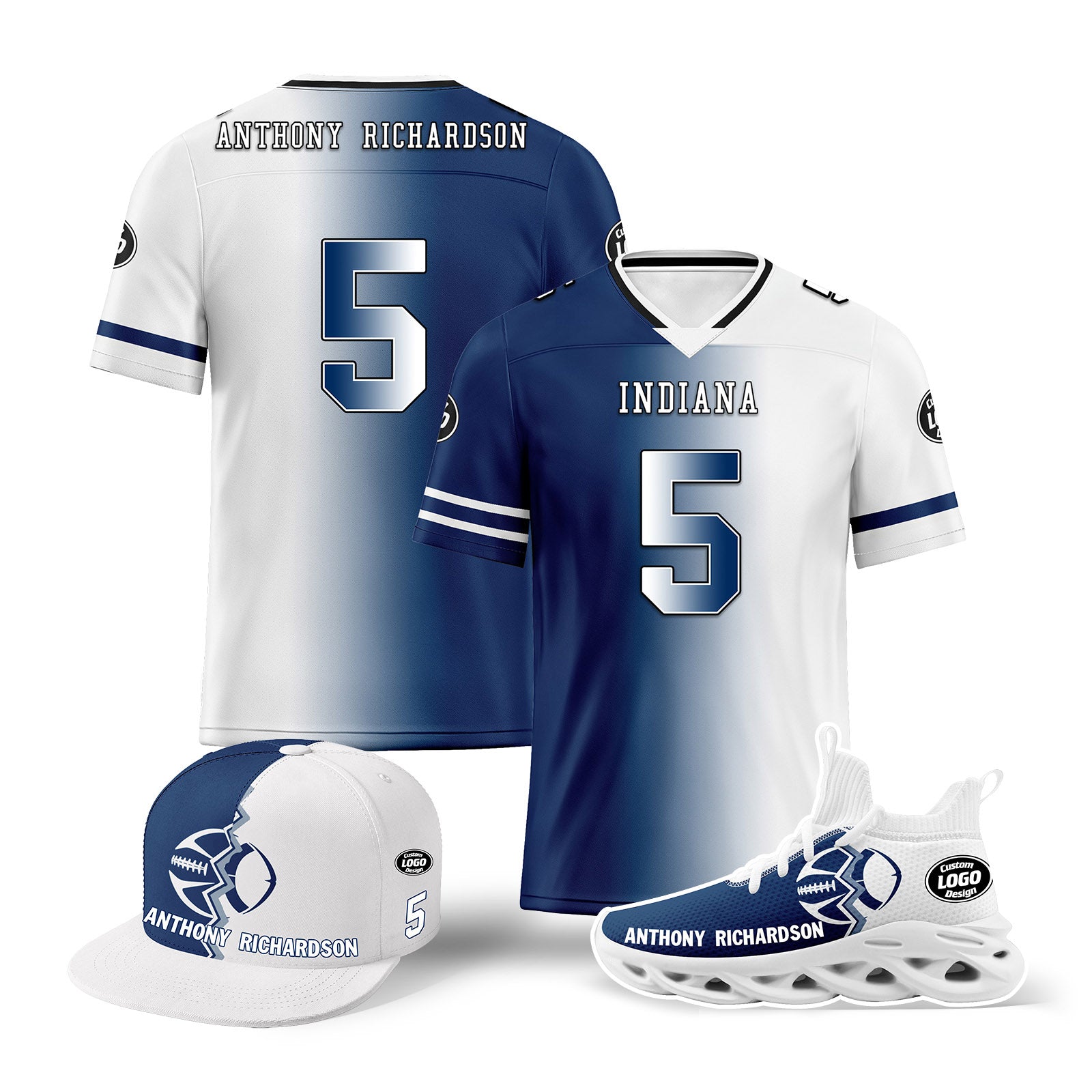Custom Blue White Indiana Football Jersey MaxSoul Shoes and Hat Combo Offer Personalized Combo ZH-D028018-23