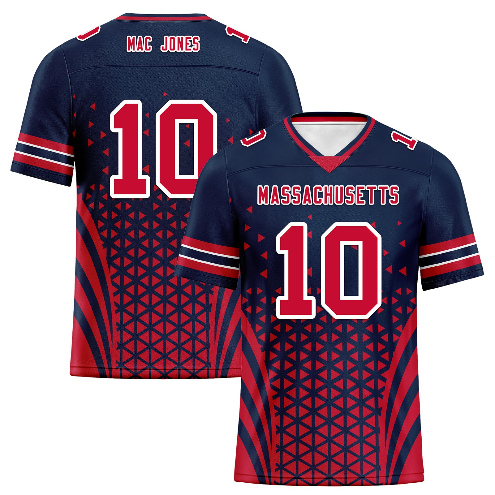 Custom Blue White Massachusetts Personalized Authentic Football Jersey FBJ02-D023033-26