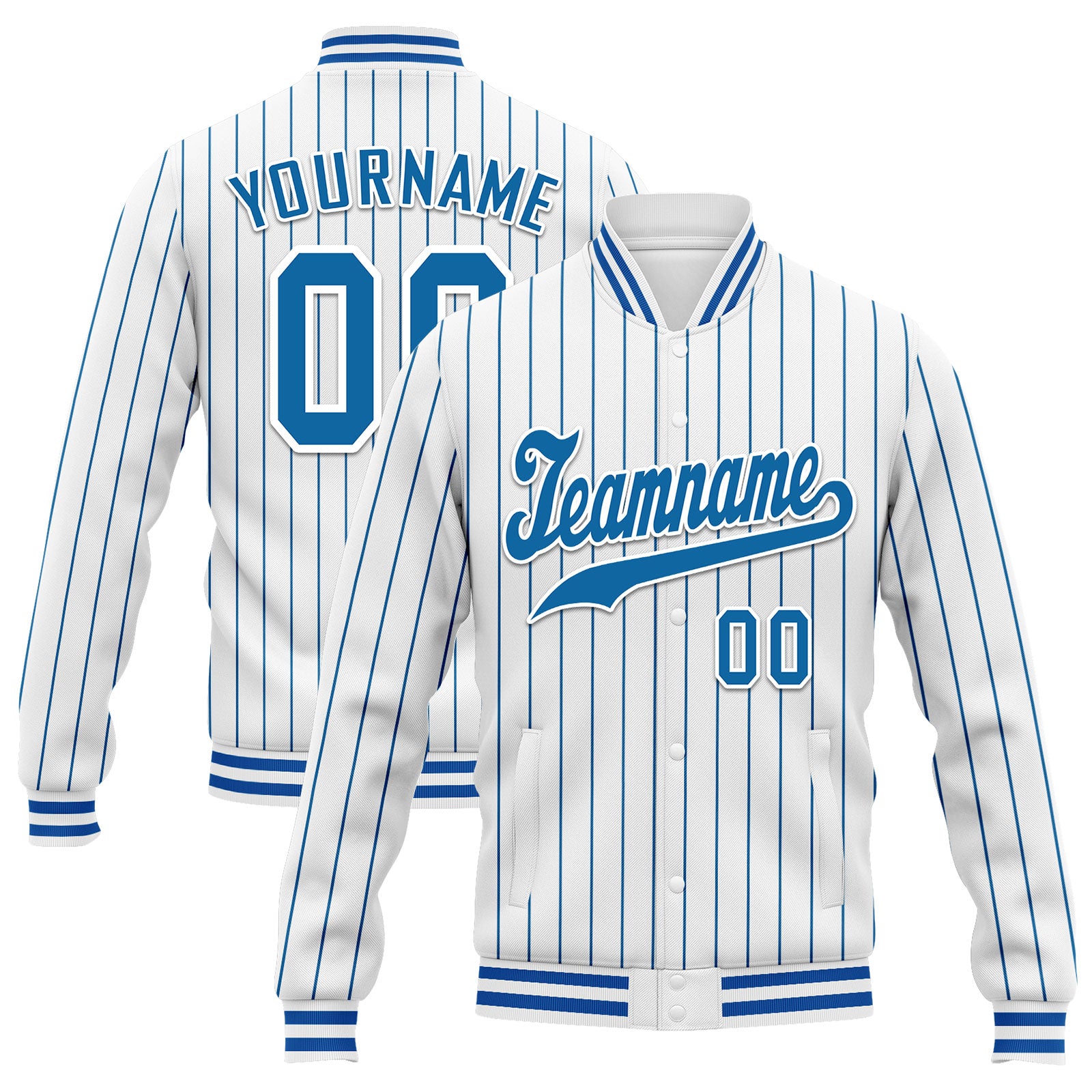 Custom Blue White Stripe Fashion Jacket Bomber Full-Snap Varsity Letterman Personalized Jacket FZ005-D020219-19