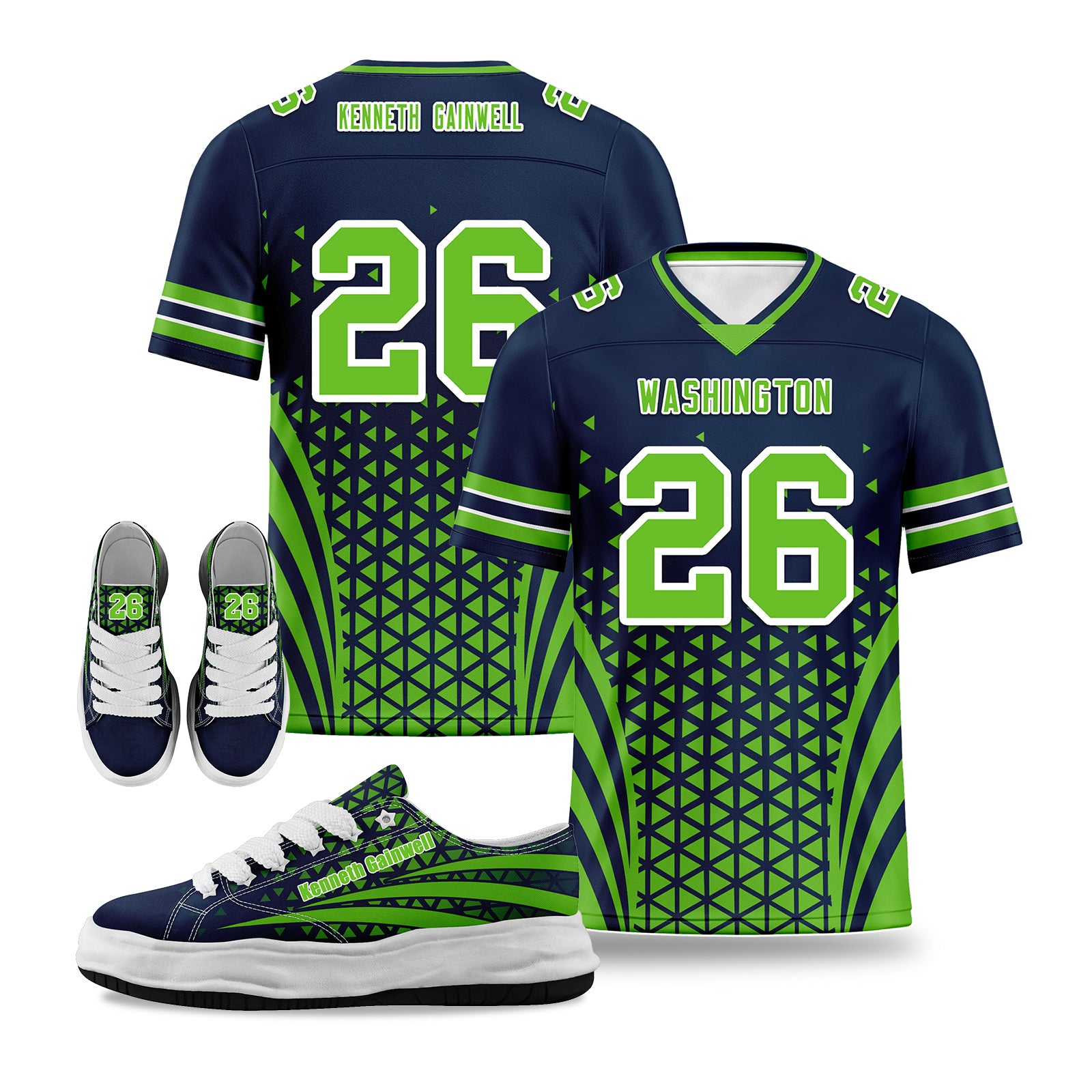 Custom Blue White Washington Football Jersey and Sports Shoes Combo Offer Personalized Combo ZH-D023031-27