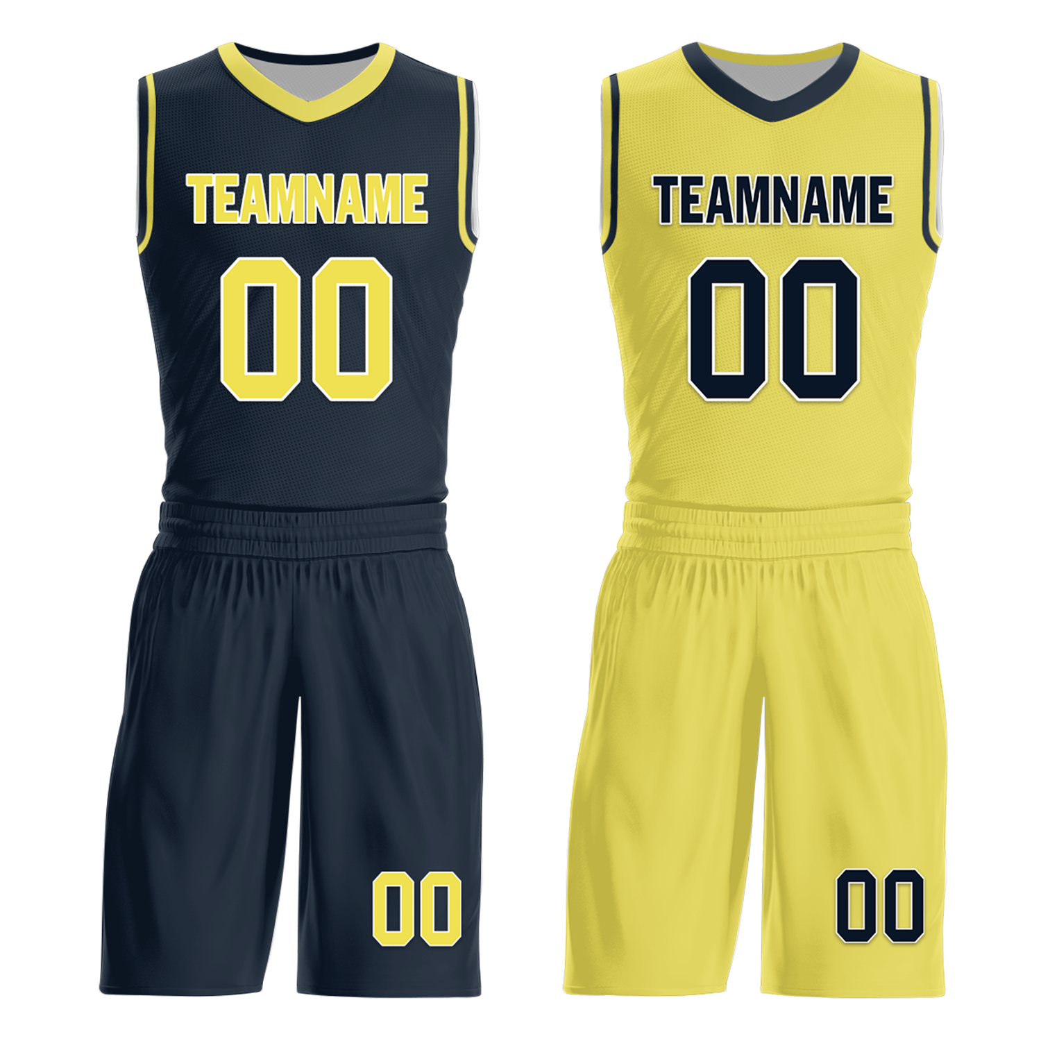 Custom Blue Yellow Classic Style Reversible Basketball Uniform Personalized Ordinary BBJR-D017059