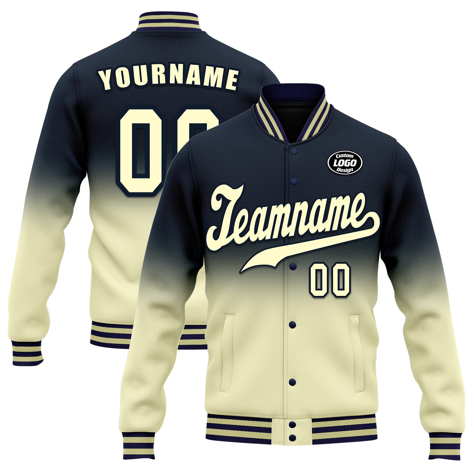 Custom Blue Yellow Fade Fashion Jacket Bomber Full-Snap Varsity Letterman Personalized Jacket FZ005-D020229-25