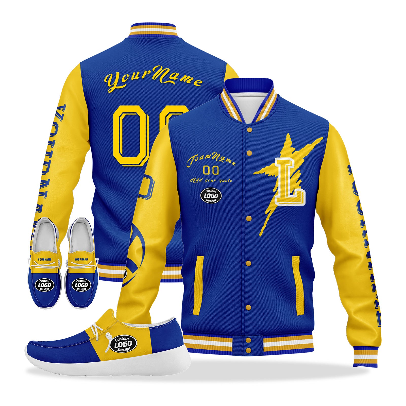 Custom Blue Yellow Los Angeles Jacket and Sports Shoes Combo Offer Personalized Combo ZH-D020294-15