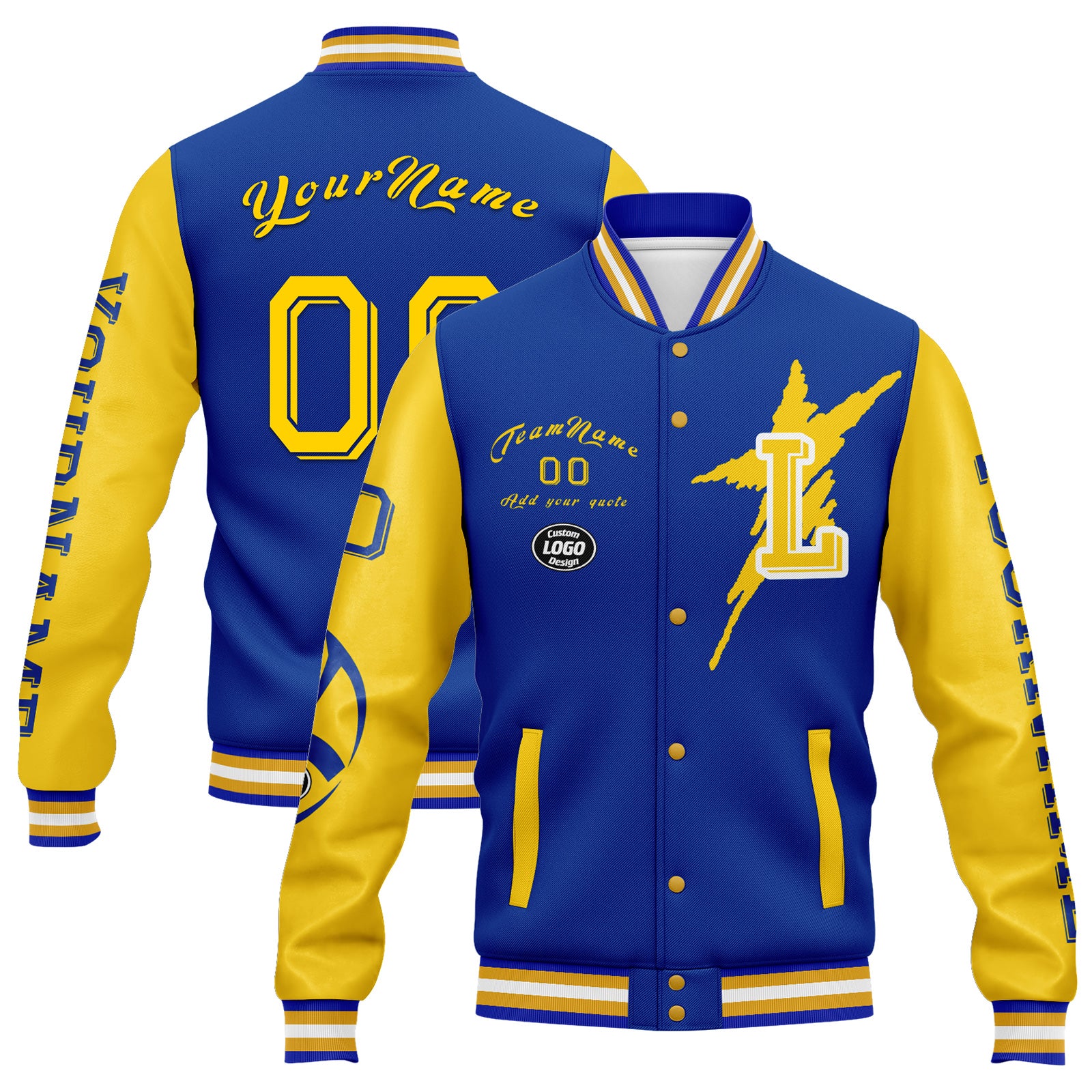 Custom Blue Yellow Los Angeles Jacket Bomber Full-Snap Varsity Letterman Personalized Jacket FZ005SX-D020290-15