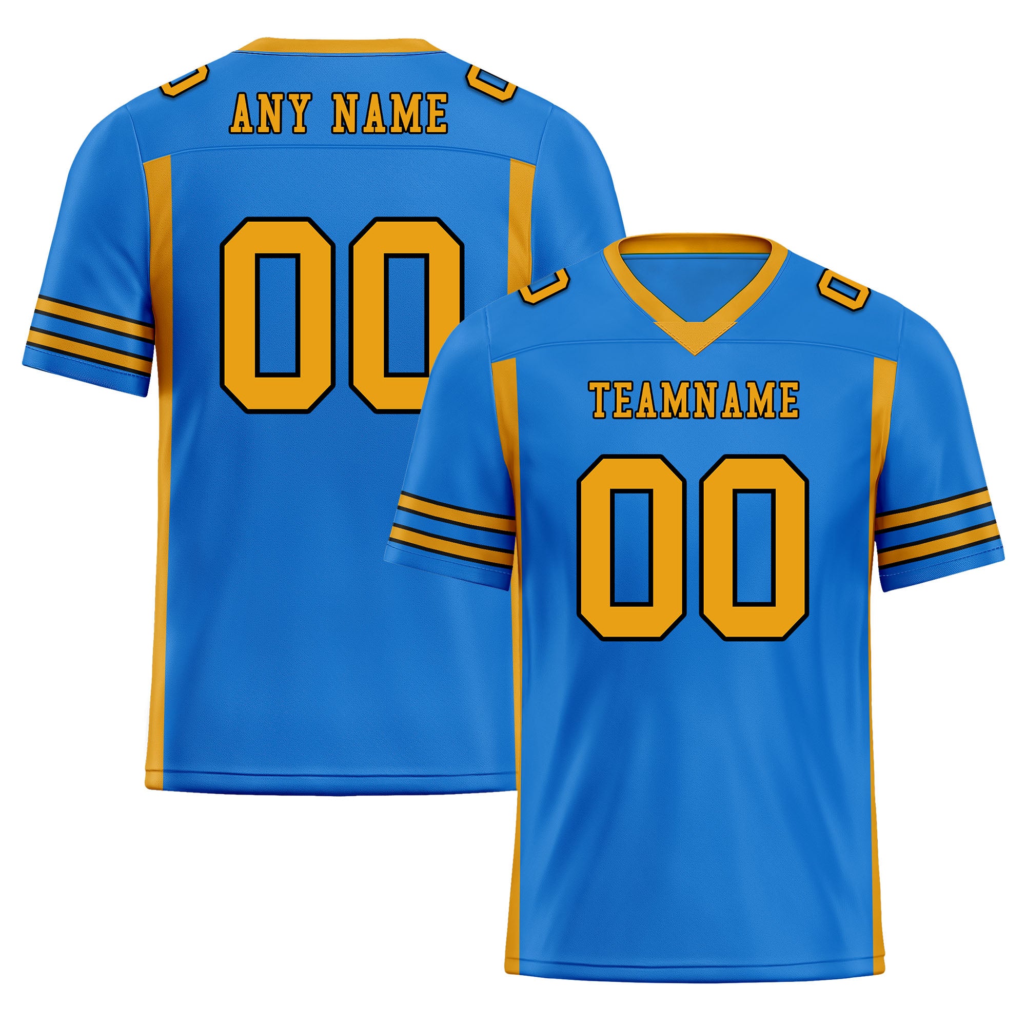 Custom Blue Yellow Striped Sleeves Personalized Authentic Football Jersey FBJ02-D06053