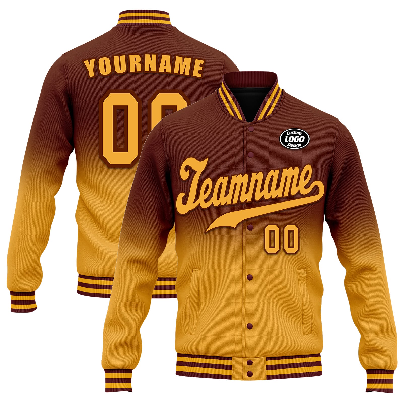 Custom Brown Yellow Fade Fashion Jacket Bomber Full-Snap Varsity Letterman Personalized Jacket FZ005-D020229-12