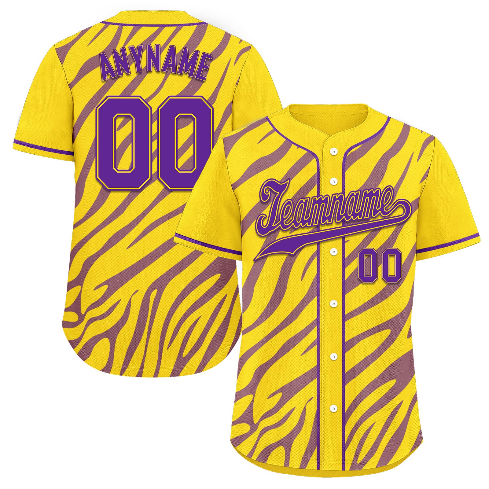 Custom Gold Purple Zebra Pattern Personalized Authentic Baseball Jersey BSBJ01-D020201-14