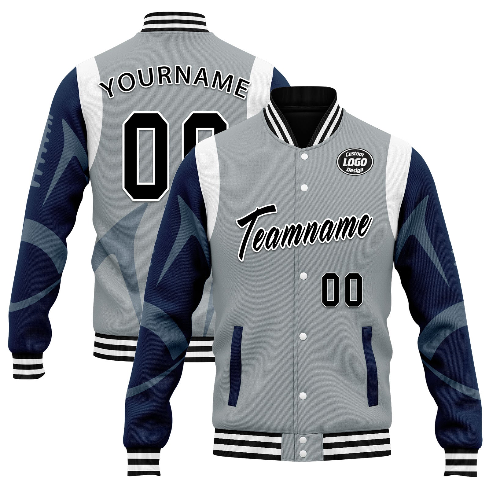 Custom Gray Seattle Jacket Bomber Full-Snap Varsity Letterman Personalized Jacket FZ005-D025004-27