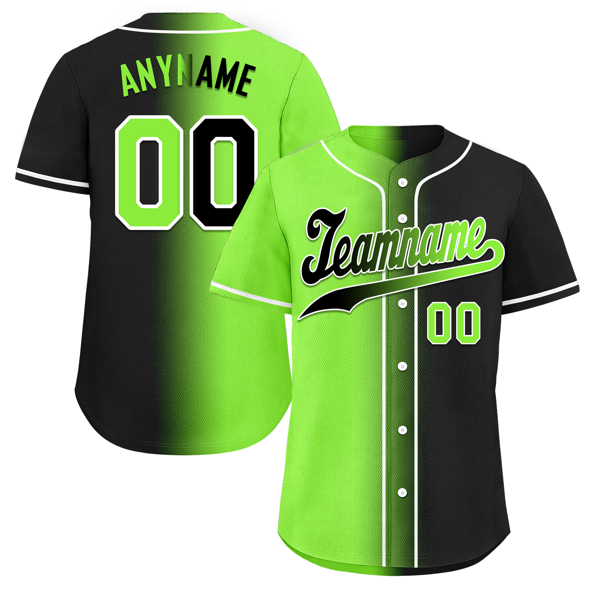 Custom Green Black Gradient Fashion Personalized Authentic Baseball Jersey BSBJ01-D0a709c