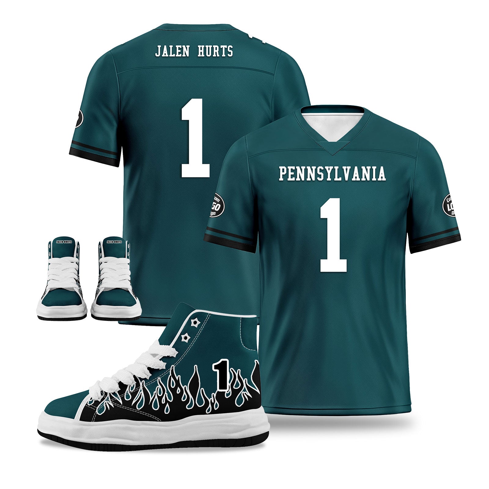 Custom Green Black Philadelphia Football Jersey and Firesoul Sports Shoes Combo Offer Personalized Combo ZH-D020273-23