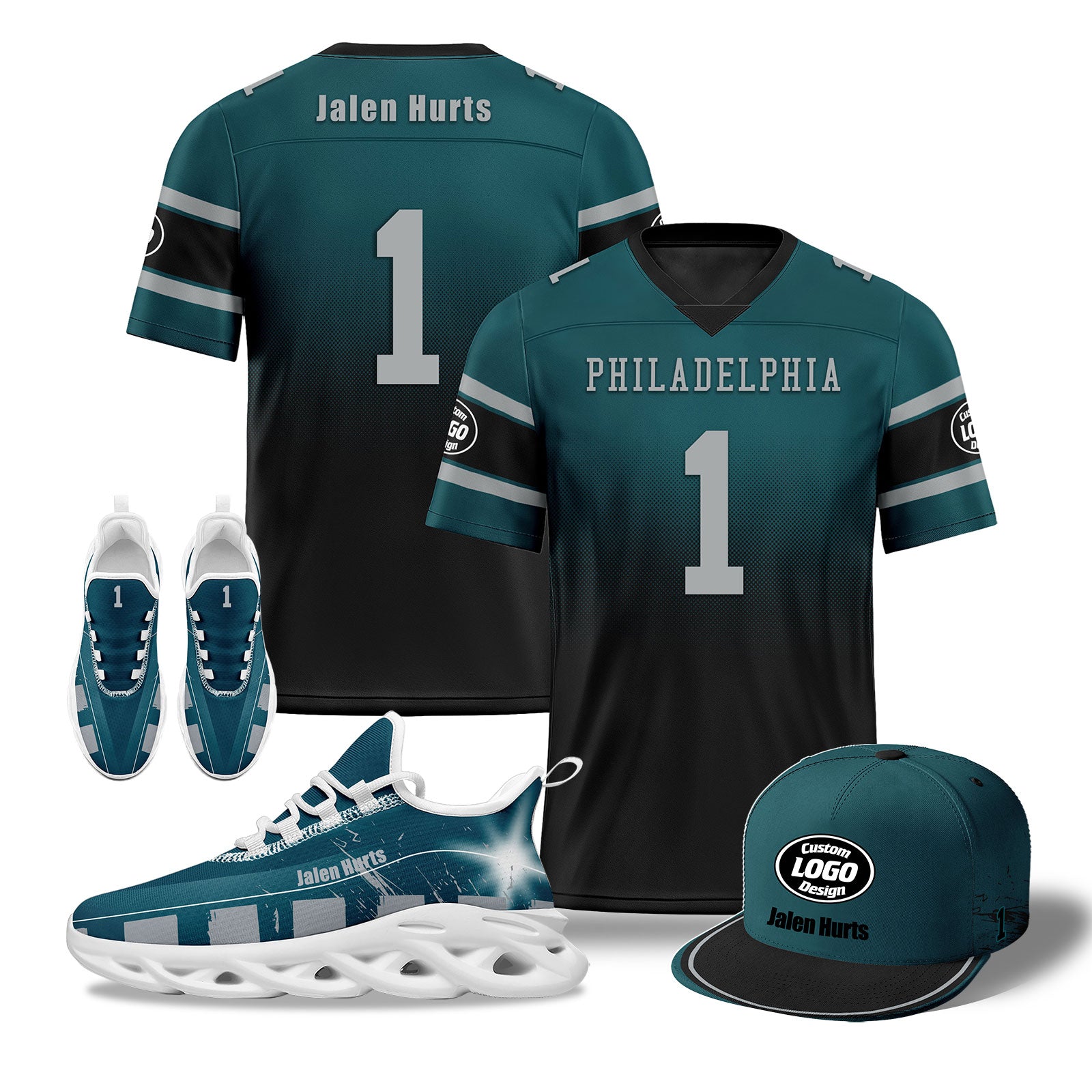 Custom Green Black Philadelphia Football MaxSoul Shoes and Hat Combo Offer Personalized Combo ZH-D020268-23