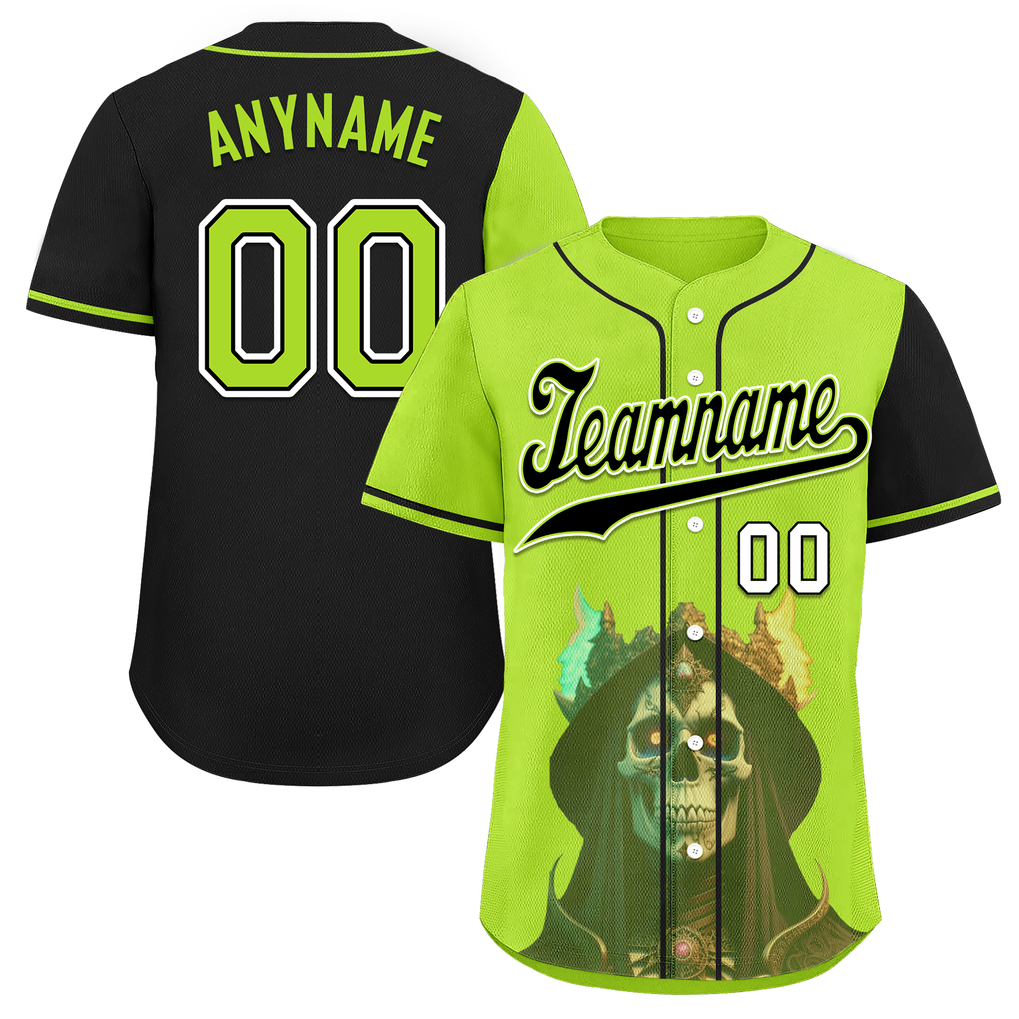 Custom Green Black Skull Fashion Personalized Authentic Baseball Jersey BSBJ01-D017153
